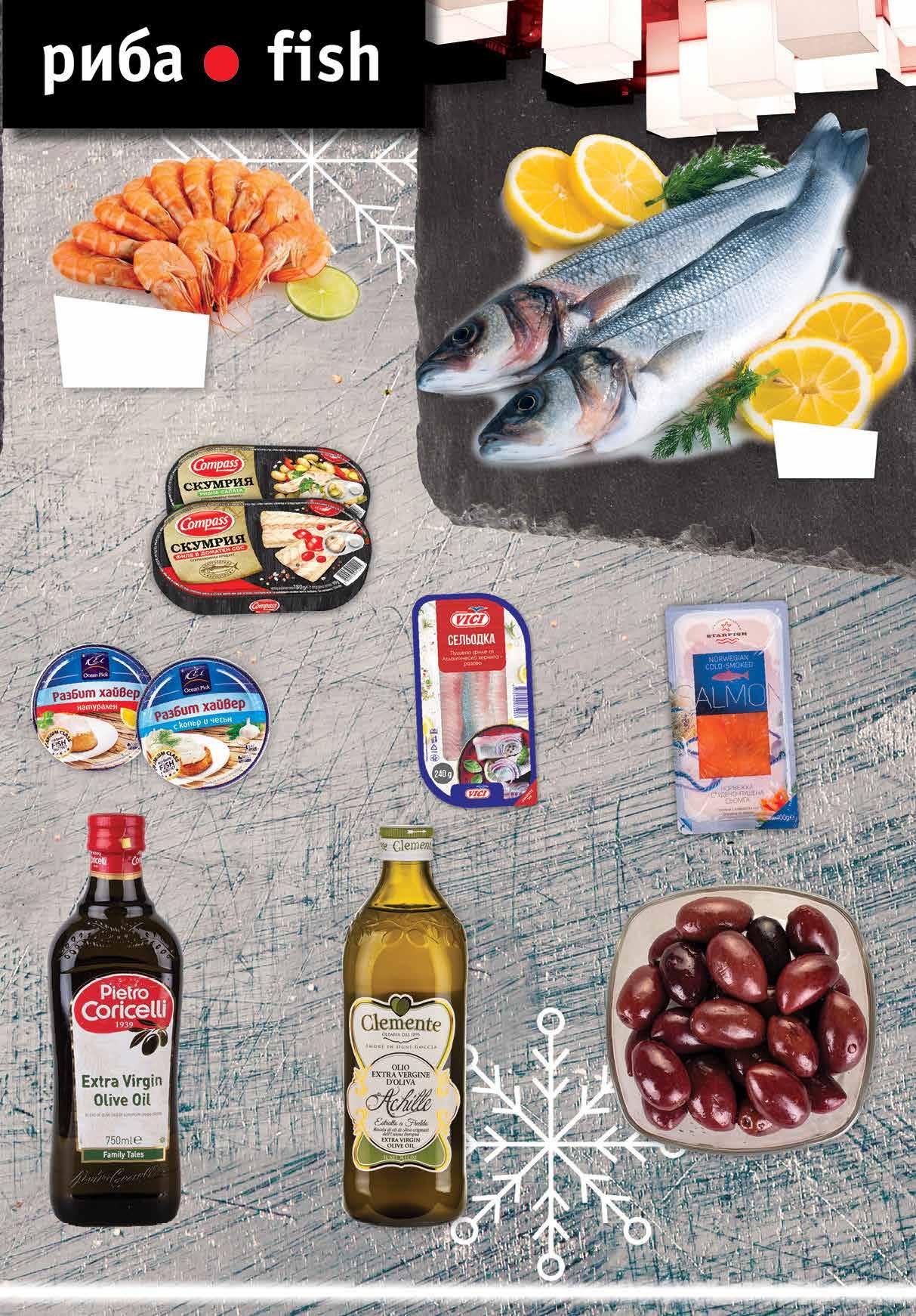 9.69 -27% 6 99 лв|бр 3.39 -32% 2 29 лв|бр 13.99 -30% 9 79 лв|кг 3.99 -30% 2 79 лв|бр 5.99 -33% 3 99 лв|бр 99 лв|бр 18.99 -36% 11 99 лв|бр 16.99 -29% 11 99 лв|КГ 26.99 -29% 18 49 лв|кг 23.99 -31% 16 Пушена сьомга филе STARFISH слайс 100 г Маслиново масло Екстра Върджин CLEMENTE 1 л Маслиново масло Екстра Върджин PIETRO CORICELLI 750 мл Филе скумрия в доматен сос Рибна салата със скумрия филе COMPASS 180 г Разбит хайвер OCEAN PICK различни видове 160 г Натурални маслини Каламата джъмбо насипни от щандова витрина Сельодка VICI осолено филе от херинга различни видове 240 г Скариди бланширани от щандова витрина* Лаврак чистен от щандова витрина* 7 ТВ „Фантастико” не носи отговорност за допуснати печатни грешки. Количествата са лимитирани! Предложенията са валидни до сряда 22.00ч. на 18.01.2023 г. Продуктите се предлагат в следните филиали: Ф6 район Студентски, бул. Г.М. Димитров №77; Ф7 жк Овча купел 1, ул. Монтевидео №98; Ф11 жк Хаджи Димитър, ул. Васил Кънчев/ул. Баба Вида №29; Ф14 гр. Ботевград, ул. Витоша 1А; Ф16 жк Люлин 6, бул. Джавахарлал Неру №26А; Ф17 жк Надежда 3, бул. Хан Кубрат №26, до бл. 301; Ф18 жк Стрелбище, ул. Нишава №138; Ф19 кв Бояна, бул. Ал. Пушкин №64; Ф21 жк Младост 4, ул. Д-р Атанас Москов №15; Ф22 Студентски град, ул. Акад. Борис Стефанов №22; Ф28 жк Гео Милев, ул. Коста Лулчев №52, в сградата на Sky City Mall; Ф30 кв Драгалевци, бул. Черни връх №204; Ф33 бул. Симеоновско шосе 87А; Ф34 жк Хаджи Димитър, ул. Макгахан №81; Ф36 жк Дървеница, бул. Св. Климент Охридски №15; Ф38 жк Овча купел, ул. Любляна №42А; Ф39 жк Разсадника – Коньовица, ул. Хъшове №4; Ф40 жк Гео Милев, ул. Николай Коперник №27; Ф41 гр. Елин Пелин, ул. Витоша №7; Ф42 жк Младост 1, бул. Йерусалим №22; Ф43 кв. Манастирски ливади, ул. Пирин №51А Ф44 гр. Банкя, кв. Изгрев, ул. Стефан Стамболов №138; Ф45 гр. Перник, ж.к. Изток, ул. Юрий Гагарин №52.