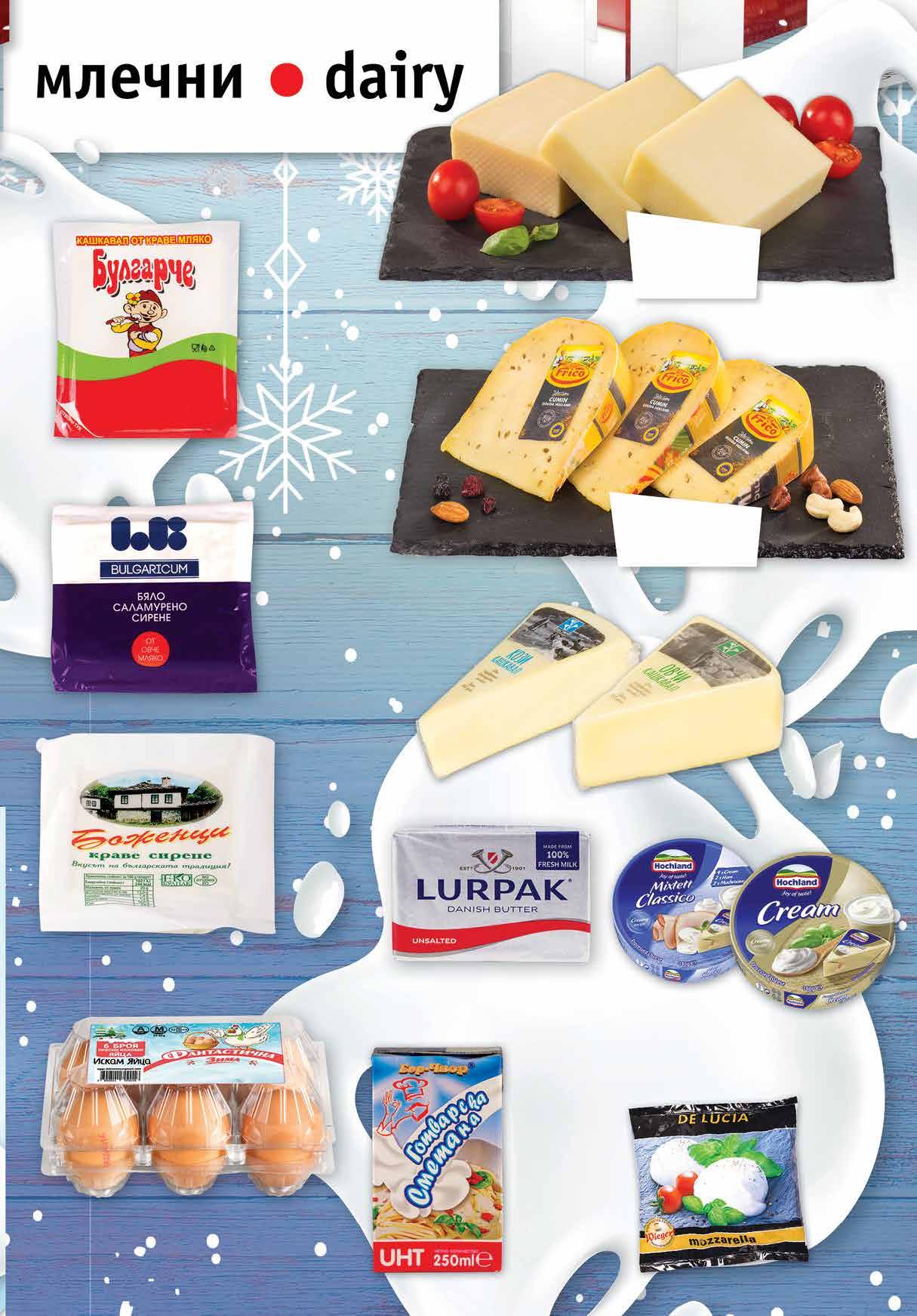 3.65 -20% 2 89 лв|бр 6.99 -28% 4 99 лв|бр 4.19 -28% 2 99 лв|бр 50 лв|кг 47.90 -30% 33 10.79 -25% 7 99 лв|бр 9.99 -20% 7 99 лв|бр 2.99 -20% 2 39 лв|бр 99 лв|кг 25.99 -23% 19 79 лв|бр 14.99 -28% 10 79 лв|кг 21.49 -21% 16 2.85 -23% 2 19 лв|бр Топено сирене HOCHLAND различни видове 140 г Кашкавал от краве мляко ХАДЖИЙСКИ от голяма пита Краве масло LURPAK 200 г Моцарела DE LUCIA 125 г Готварска сметана БОР ЧВОР UHT, 250 мл Кашкавал от козе или овче мляко ПАСТИР вакуум, 350 г Кашкавал от краве мляко БУЛГАРЧЕ вакуум, 400 г Сирене от краве мляко БОЖЕНЦИ вакуум Сирене от овче мляко ЕЛ БИ вакуум, 400 г Яйца ИСКАМ ЯЙЦА размер М 6 бр кутия Сирене гауда с ким FRICO деликатесна витрина 5 ТВ „Фантастико” не носи отговорност за допуснати печатни грешки. Количествата са лимитирани! Предложенията са валидни до сряда 22.00ч. на 18.01.2023 г.