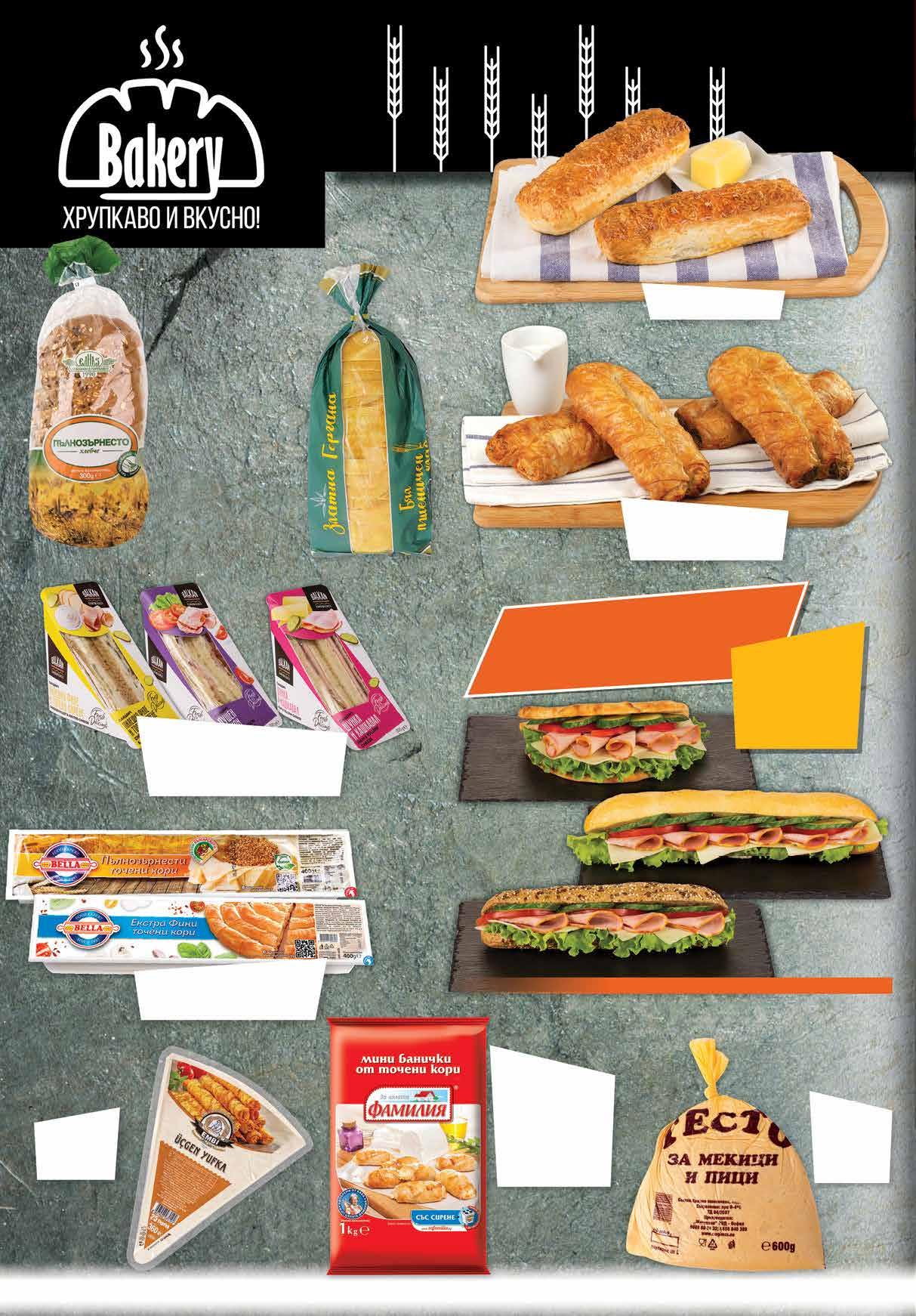 2.99 -26% 2 19 лв|бр 1.69 -47% 0 89 лв|бр 11.79 -23% 8 99 лв|бр 2.69 -26% 1 99 лв|бр 4.69 -20% 3 75 лв|бр 0.75 -40% 0 45 лв|бр 2.19 -22% 1 69 лв|бр 2.45 -18% 1 99 лв|бр 3.99 -32% 2 69 лв|бр пълнозърнести 3.99 -32% 2 69 лв|бр Барче кашкавалено 60 г Хляб Златна Гергана ДОБРУДЖАНСКИ ХЛЯБ 700 г Кори EMBI триъгълни 360 г Мини банички ФАМИЛИЯ различни видове 1 кг замразени Пълнозърнесто хлебче 300 г ЕЛИАЗ Тесто за пици и мекици 600 г охладено *предложението е валидно за магазините със сини цени Вземи сандвич със свинско филе с отстъпка -20% Сандвич BALKAN пушен бекон; пилешко филе и топено сирене; шунка и кашкавал 200 г Баничка със сирене; със сирене и спанак 120 г Tочени кори BELLA екстра фини; пълнозърнести 400 г 10 Продуктите се продават в количества, обичайни за едно домакинство. Декорацията към продуктите не е включена в тяхната цена. ТВ „Фантастико“ си запазва правото на промяна в цените.