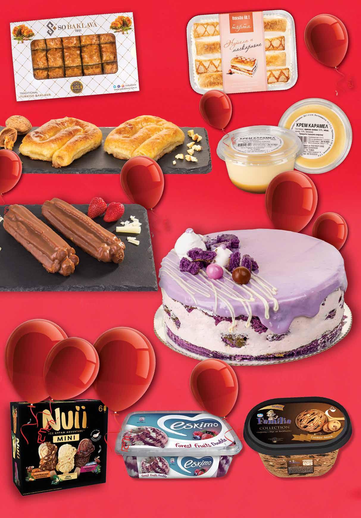 2.49 -44% 1 39 лв|бр 15.69 -38% 9 69 лв|бр 14.99 -40% 8 99 лв|бр 4.99 -50% 2 49 лв|бр 3.39 -41% 1 99 лв|бр2.19 -54% 0 99 лв|бр 99 лв|бр 24.99 -44% 13 7.98 -50% 3 99 лв|бр Баклава с шамфъстък SO BAKLAVA 600 г Еклер с шоколад 100 г Крем карамел ГОСТОСО 200 г Торта TASTE IT Нутела и маскарпоне 4 парчета, 480 г Торта Пурпурно кадифе ДВЕТЕ ФУКЛИ 700 г отстъпка -40% Саралия 130 г *предложението е валидно за магазините със сини цени Всички сладоледи мултипак Nuii, Oreo, Toblerone от 198-253 г с Сладолед ЕСКИМО различни видове 1 л Сладолед FAMILIA Collection различни видове 505-563 г 12 Продуктите се продават в количества, обичайни за едно домакинство. Декорацията към продуктите не е включена в тяхната цена. ТВ „Фантастико“ си запазва правото на промяна в цените.