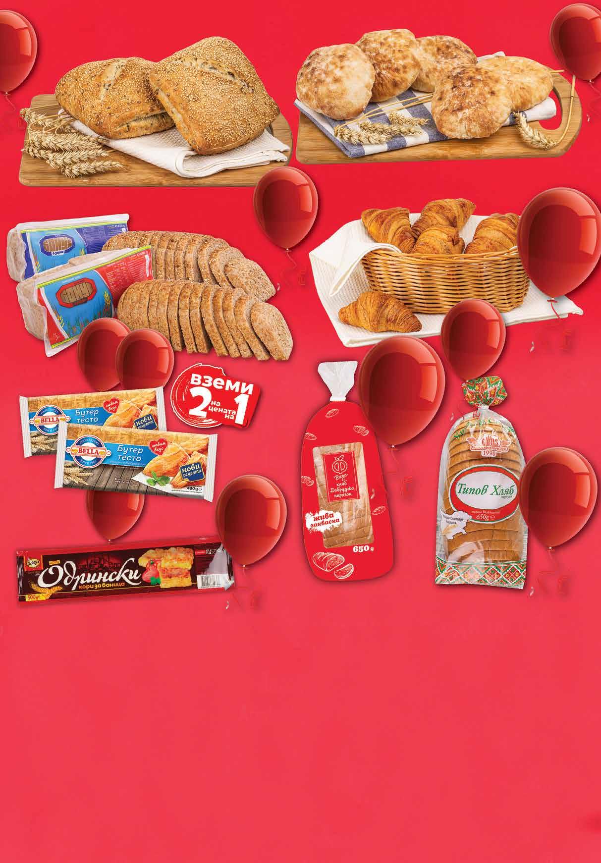 1.25 -28% 0 89 лв|бр 0.39 -51% 0 19 лв|бр 0.35 -51% 0 17 лв|бр 3.19 -50% 1 59 лв|бр 2.69 -44% 1 49 лв|бр 2.19 -41% 1 29 лв|бр 3.19 -31% 2 19 лв|бр 8.96 -50% 4 48 лв|2 бр Бутер тесто БЕЛЛА замразено 2 бр х 400 г Одрински кори за баница в газова среда 500 г Мини пърленка 50 г Кроасан с масло20 г Многосеменен хляб без мая 300 г Нарязан хляб ЕЛИАЗ Tипов Утвърден стандарт България 650 г Хляб Добруджа Ф ВКУС нарязан 650 г Хляб БОНУС различни видове 430 г 10 Продуктите се продават в количества, обичайни за едно домакинство. Декорацията към продуктите не е включена в тяхната цена. ТВ „Фантастико“ си запазва правото на промяна в цените. ТАЛОНИ НА “ЛЕТИЩЕ СОФИЯ” ЕАД И ДП “РВД” ЛЕГЕНДА ЦЕНИ: Уважаеми клиенти, обръщайте внимание на цветовото обозначение на цената. Тук може да намерите списък с магазините, разпределени спрямо цвета на цените и наличността на промоциите. ЧЕРВЕНА ЦЕНА: предлагат се в цялата верига ЗЕЛЕНА ЦЕНА: Ф6 район Студентски, бул. Г.М. Димитров №77; Ф7 жк Овча купел 1, ул. Монтевидео №98; Ф11 жк Хаджи Димитър, ул. Васил Кънчев/ул. Баба Вида №29; Ф14 гр. Ботевград, ул. Витоша 1А; Ф15 жк Люлин 1, ул. Тома Георгиев №1; Ф16 жк Люлин 6, бул. Джавахарлал Неру №26А; Ф17 жк Надежда 3, бул. Хан Кубрат №26, до бл. 301; Ф18 жк Стрелбище, ул. Нишава №138; Ф19 кв Бояна, бул. Ал. Пушкин №64; Ф21 жк Младост 4, ул. Д-р Атанас Москов №15; Ф22 Студентски град, ул. Акад. Борис Стефанов №22; Ф23 жк Надежда 2, ул. Свети Никола Нови №14; Ф27 жк Надежда 1, ул. Й. Лютибродски/ ул. Царевец до бл.118; Ф28 жк Гео Милев, ул. Коста Лулчев №52; Ф29 гр. Кюстендил, ул. Цар Освободител №231; Ф32 жк Младост 3, ул. 102, срещу бл. 321; Ф34 жк Хаджи Димитър, ул. Макгахан №81; Ф35 жк Дружба 2, бул. Проф. Цветан Лазаров №140; Ф36 жк Дървеница, бул. Св. Климент Охридски №15; Ф38 жк Овча купел, ул. Любляна №42А; Ф39 жк Разсадника – Коньовица, ул. Хъшове №4; Ф40 жк Гео Милев, ул. Николай Коперник №27;Ф41 гр. Елин Пелин, ул. Витоша №7; Ф42 жк Младост 1, бул. Йерусалим №22; Ф43 кв. Манастирски ливади, ул. Пирин №51А; Ф44 гр. Банкя, кв. Изгрев, ул. Стефан Стамболов №138; Ф45 гр. Перник, ж.к. Изток, ул. Юрий Гагарин №52. СИНЯ ЦЕНА: Ф6 район Студентски, бул. Г.М. Димитров №77; Ф12 жк Младост 4, ул. “Александър Паскалев” №3; Ф14 гр. Ботевград, ул. Витоша 1А; Ф15 жк Люлин 1, ул. Тома Георгиев №1; Ф16 жк Люлин 6, бул. Джавахарлал Неру №26А; Ф17 жк Надежда 3, бул. Хан Кубрат №26, до бл. 301; Ф22 Студентски град, ул. Акад. Борис Стефанов №22; Ф28 жк Гео Милев, ул. Коста Лулчев №52; Ф30 кв Драгалевци, бул. Черни връх №204; Ф34 жк Хаджи Димитър, ул. Макгахан №81; Ф36 жк Дървеница, бул. Св. Климент Охридски №15; Ф38 жк Овча купел, ул. Любляна №42А; Ф40 жк Гео Милев, ул. Николай Коперник №27; Ф42 жк Младост 1, бул. Йерусалим №22; Ф44 гр. Банкя, кв. Изгрев, ул. Стефан Стамболов №138; Ф45 гр. Перник, ж.к. Изток, ул. Юрий Гагарин №52. Във всички обекти на верига Фантастико можете да заплатите със следните карти и ваучери: РАБОТНО ВРЕМЕ: *от 7.30 до 22.00 ч. Ф1 ул. Оборище №72; Ф2 жк Красно село, ул. Хубча №2; Ф3 бул. Мадрид №8; Ф4 жк Западен парк, ул. Суходолска №2; Ф5 бул. Цариградско шосе №56; Ф7 жк Овча купел 1, ул. Монтевидео №98; Ф8 жк Лозенец, бул. Черни връх №20; Ф9 Спирка Оряхово, бул. Сливница №65; Ф10 жк Борово, ул. Ген. Стефан Тошев, бл.223; Ф11 жк Хаджи Димитър, ул. Васил Кънчев/ул. Баба Вида; Ф12 жк Младост 4, ул. “Александър Паскалев” №3; Ф14 гр. Ботевград, ул. Витоша 1А; Ф15 жк Люлин 1, ул. Тома Георгиев №1; Ф16 жк Люлин 6, бул. Джавахарлал Неру №26А; Ф17 жк Надежда 3, бул. Хан Кубрат №26, до бл. 301; Ф18 жк Стрелбище, ул. Нишава №138; Ф19 кв Бояна, бул. Ал. Пушкин №64; Ф20 жк Красн