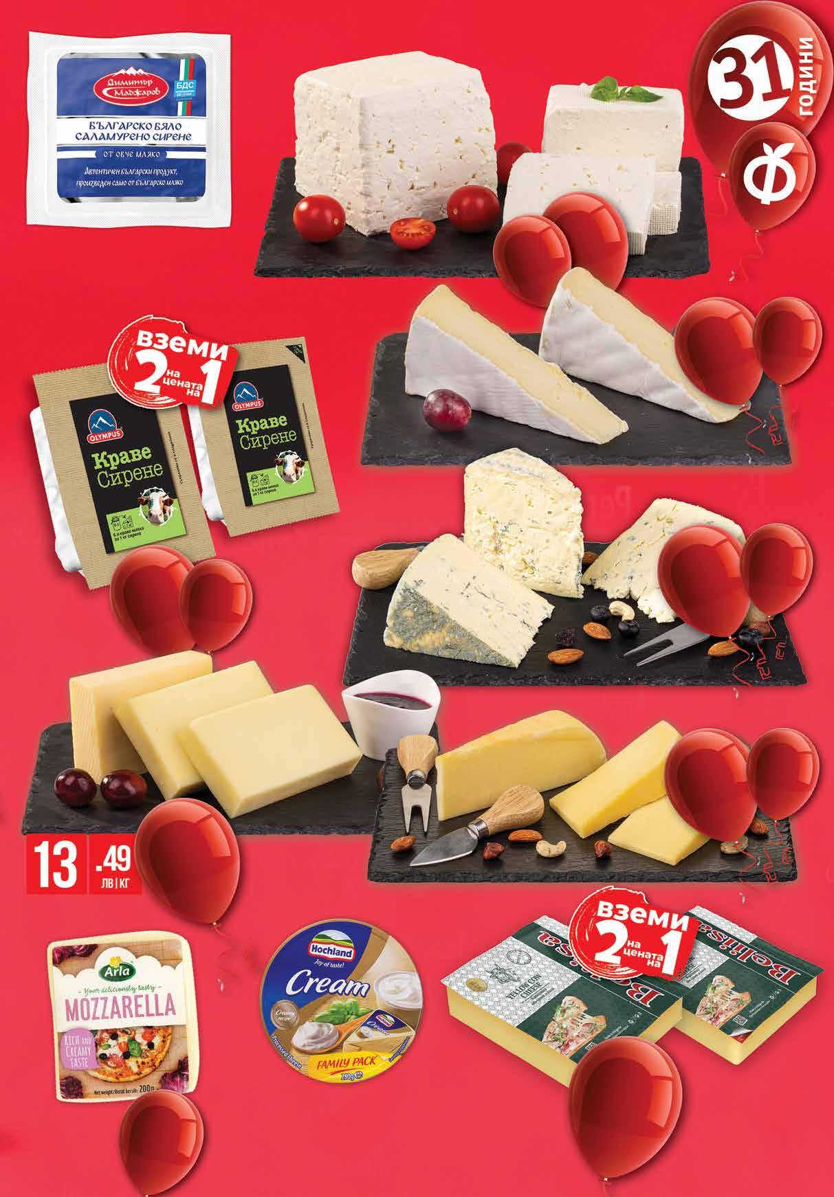 80 лв|кг 22.90 -35% 14 90 лв|кг 24.90 -36% 15 90 лв|кг 19.99 -35 % 12 15.59 -35% 9 99 лв|кг79 лв|бр 22.99 -40% 13 5.99 -50% 2 99 лв|бр 19.16 -50% 9 58 лв|2 бр 98 лв|2 бр 27.96 -50% 413 49 лв|бр 8.99 -50% Сирене Бри VAL DE SAONE от деликатесна витрина Кашкавал от краве мляко БЕЛИИСА вакуум, 2 бр х 400 г Сирене от краве мляко OLYMPUS вакуум 2 бр х 300 г Синьо сирене НИВА от деликатесна витрина Сирене гауда FARM MILL 48% от деликатесна витрина Моцарела ARLA 200 г Кашкавал от краве мляко Ф ВКУС от голяма пита Сирене от краве мляко САЯНА насипно от щандова витрина Сирене от овче мляко МАДЖАРОВ по БДС вакуум, 800 г Топено сирене Hochland сметана секторно 280 г 5ТВ „Фантастико” не носи отговорност за допуснати печатни грешки. Количествата са лимитирани! Предложенията са валидни до сряда 22.00ч. на 09.11.2022 г.