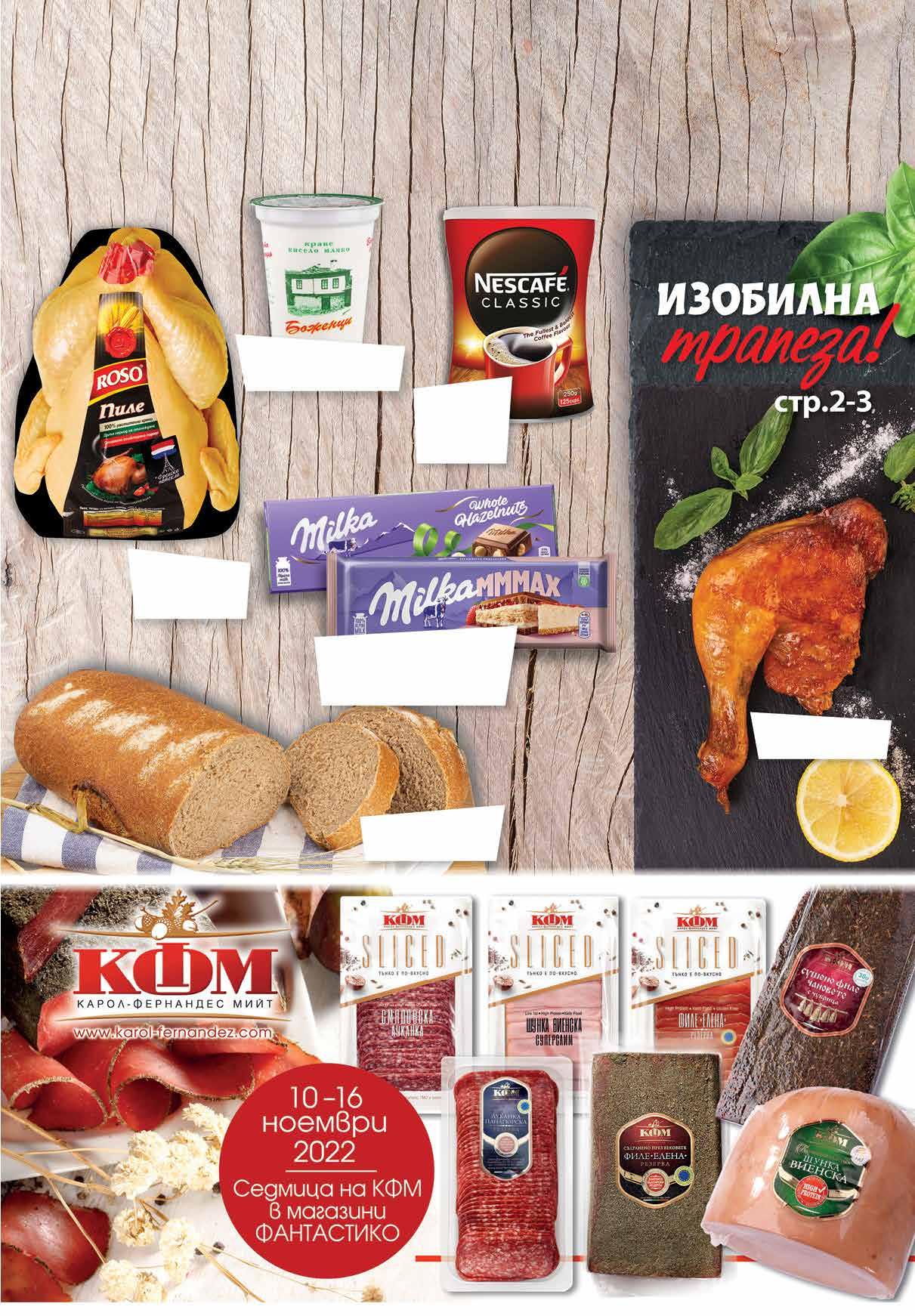 14.69 -39% 8 89 лв|бр 8.99 -33% 5 99 лв|бр 2.65 -49% 1 35 лв|бр 12.49 -20% 9 99 лв|кг 1.79 -22% 1 39 лв|бр 3.49 -28% 2 49 лв|бр Разтворимо кафе NESCAFE Classic 250 г Шоколад MILKA цял лешник, ягодов чийзкейк, шоко бисквита, орео, ноазет, лешник и стафида 250-300 г Хляб ръжено-пшеничен 800 г Охладено пиле ROSO без вътрешности тарелка Кисело мляко БОЖЕНЦИ масленост 4% 400 г Печено пилешко бутчe fantastico.stores www.fantastico.bg ОФЕРТА ЗА ПЕРИОДА от 10 .11.2022 г. до 22.00 ч . на 16.11.2022 г.
