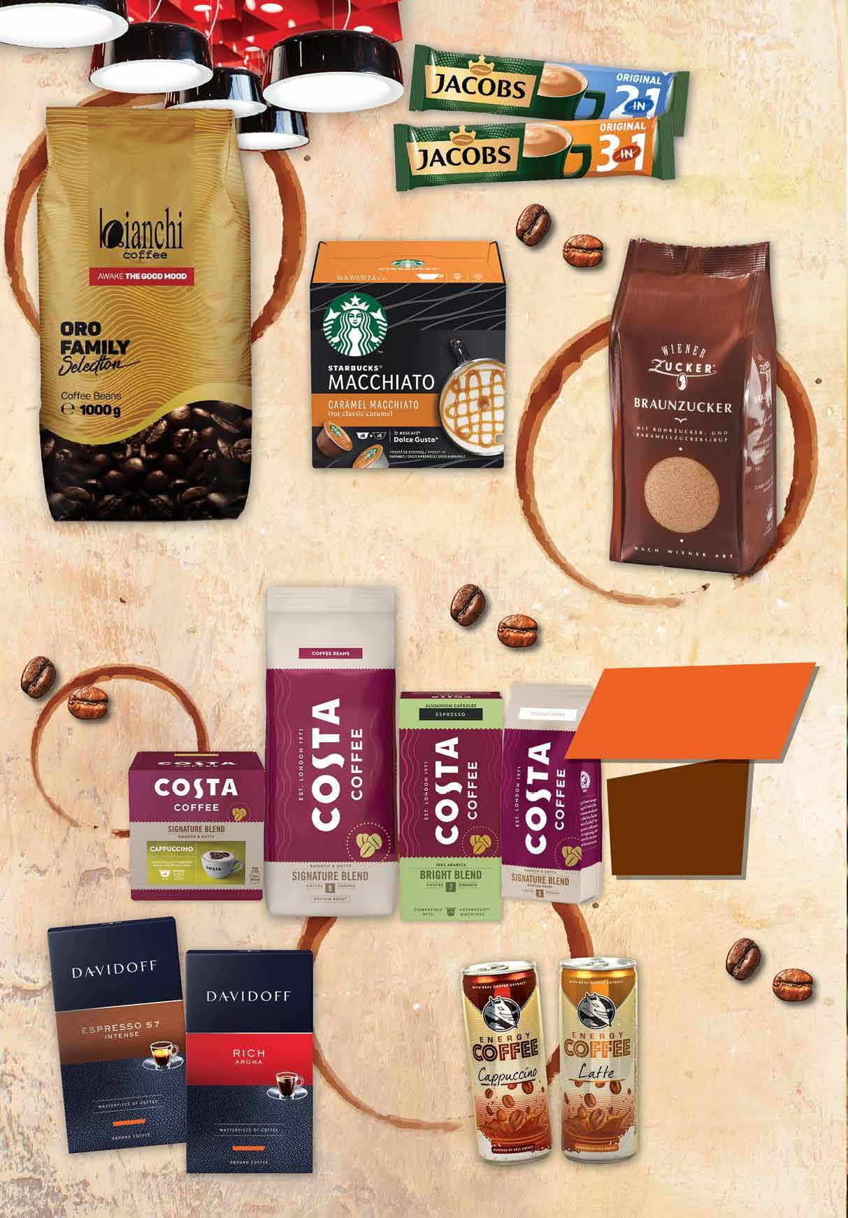 0.42 -33% 0 28 лв|бр 10.49 -23% 7 99 лв|оп. 3.39 -23% 2 59 лв|бр 59 лв|бр 24.99 -25% 18 15.59 -42% 8 99 лв|бр 1.69 -23% 1 29 лв|бр Разтворимо кафе JACOBS 2in1 14 г; 3in1 12,5-18 г различни видове Кафе капсули STARBUCKS различни видове 12 бр в опаковка *съвместими със системата Dolce Gusto Кафе на зърна BIANCHI Оrо Family Selection 1 кг Напитка COFFEE ENERGY различни видове кен, 250 мл Мляно кафе DAVIDOFF различни видове 250 г Кафява захар WIENER ZUCKER карамелена 500 г *предложението е валидно за магазините със сини цени Всички кафета с марка COSTA COFFEE с отстъпка -25% 14 Продуктите се продават в количества, обичайни за едно домакинство. Декорацията към продуктите не е включена в тяхната цена. ТВ „Фантастико“ си запазва правото на промяна в цените.