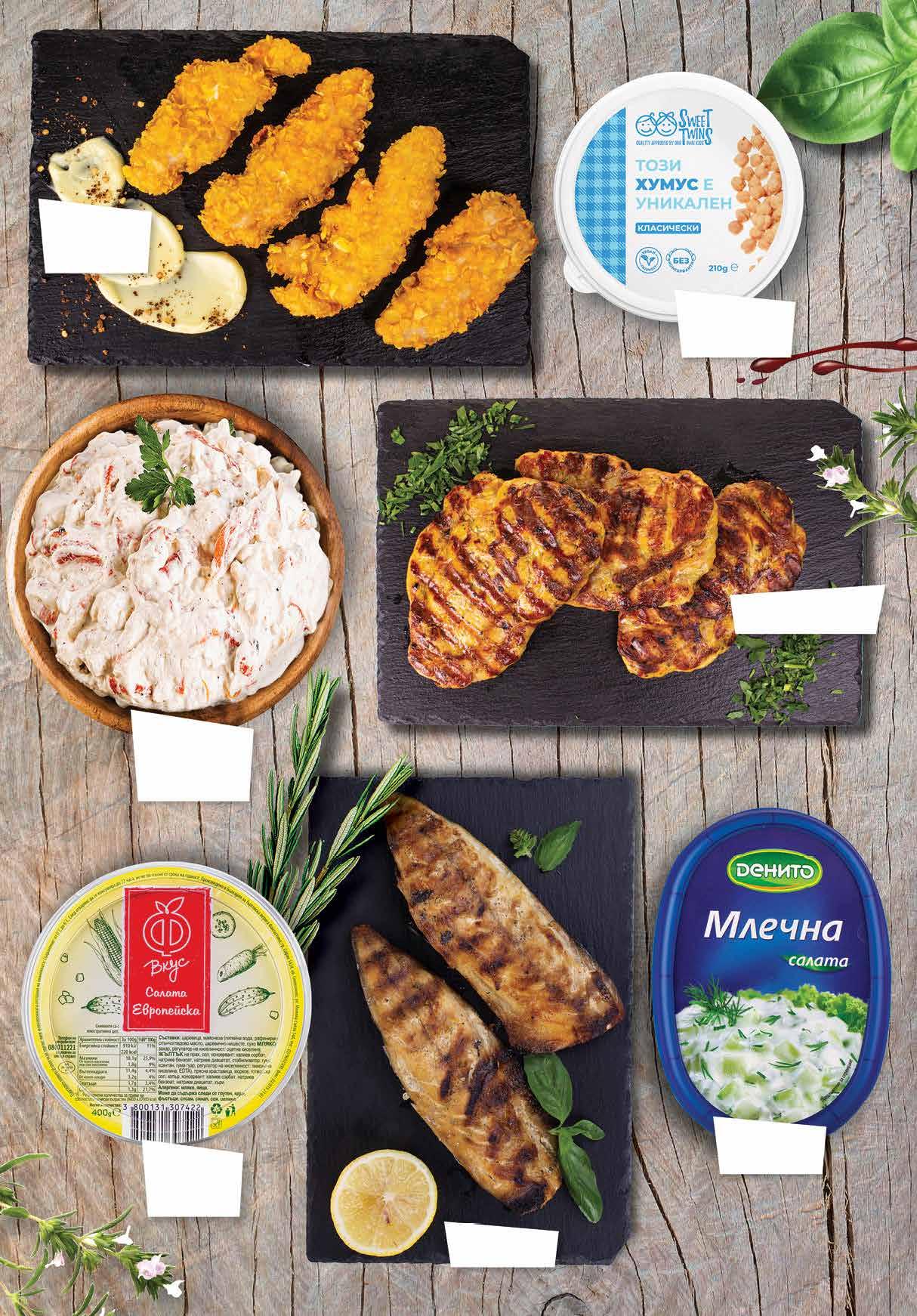 7.29 -27% 5 29 лв|бр 2.49 -20% 1 99 лв|бр 1.99 -25% 1 49 лв|бр 99 лв|кг 22.99 -21% 17 4.89 -20% 3 89 лв|бр 11.99 -25% 8 99 лв|кг 99 лв|кг 33.99 -26% 24 Eвропейска салата Ф ВКУС кутия, 400 г Млечна салата ДЕНИТО кутия 500 г Хумус SWEET TWINS различни видове 210 г Салата катък с печен пипер ВЕСЕЛИНА насипна от щандова витрина Панирани пилешки бон филенца с корнфлейкс Пилешка кълцаница на скара Филе скумрия печено на скара 2 Продуктите се продават в количества, обичайни за едно домакинство. Декорацията към продуктите не е включена в тяхната цена. ТВ „Фантастико“ си запазва правото на промяна в цените.