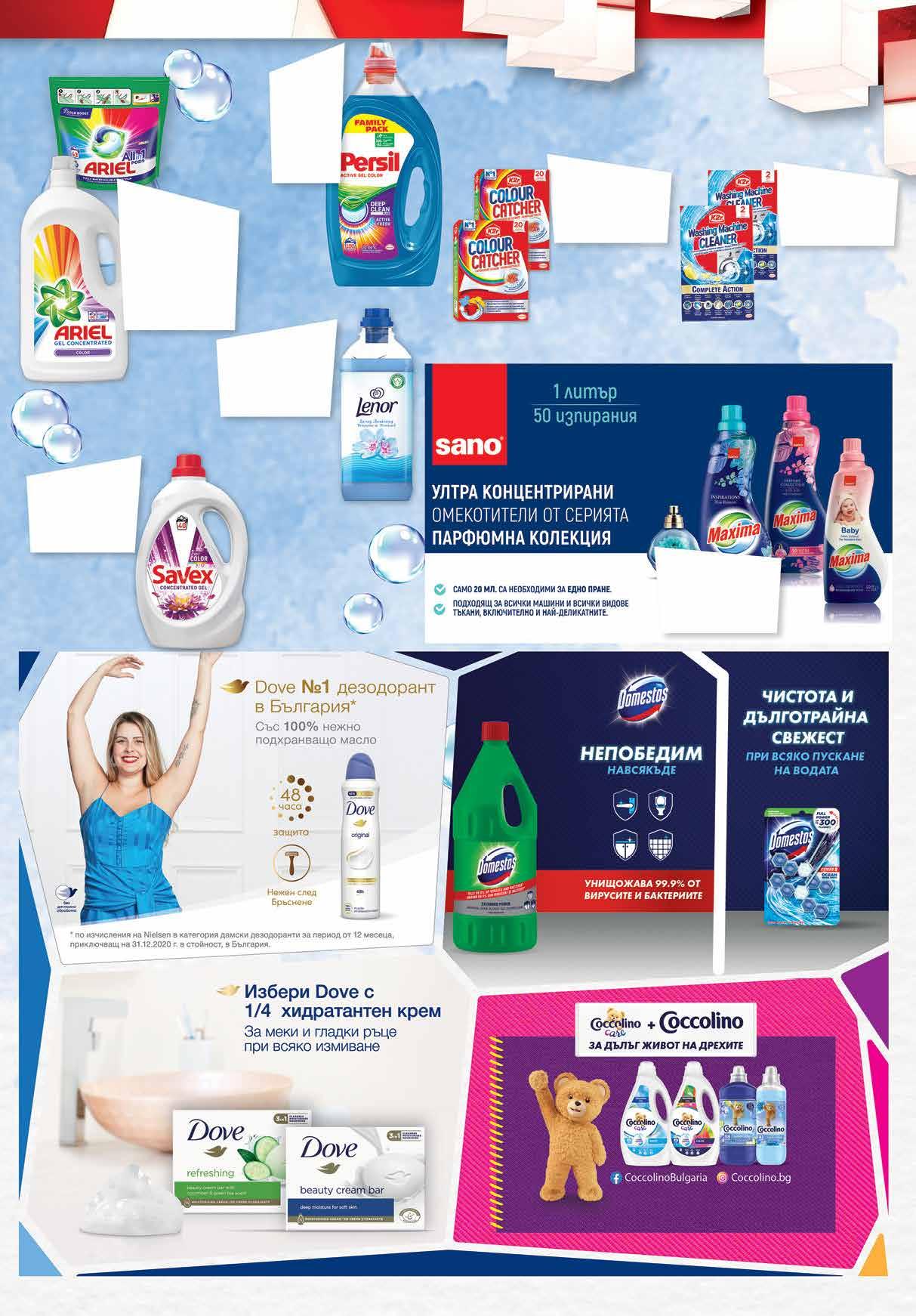 1 39 лв|бр 13.96 -50% 6 98 лв|2 oп. 13.96 -50% 6 98 лв|2 oп. 99 лв|бр 48.99 -38% 29 7 99 лв|бр 10.79 -46% 5 79 лв|бр 1.45 л 7.99 -40% 4 79 лв|бр 925мл;1,05л 39 лв|бр 14 3 79 лв|к-т 7 89 лв|бр 99 лв|бр 23 10.99 -42% 6 29 лв|бр 9.39 -47% 4 89 лв|бр 49 лв|бр 16.99 -38% 10 Гел за пране 3.3 л Капсули за пране 43 бр в опаковка различни видове Прах за пране 3.9 кг Color ARIEL Гел 2,2 л; Прах 4 кг; Капсули 28 бр за пране SAVEX различни видове Сапун DOVE различни видове 90 г Гел за пране COCCOLINO 1,8 л различни видове Омекотител COCCOLINO 1.45л; 1,05 л; 925 м л различни видове Препарат Атлантик; Бор 2 л/ Комплект ароматизатор за WC различни видове 2 бр х 55 г DOMESTOS Гел за пране PERSIL Color; Regular; Sensitive 5 л; Цветоулавящи кърпи за цветно пране COLOUR CATCHER 2 опаковки х 20 бр Омекотител различни видове 1.7 л Aроматизиращи перли 140г LENOR Препарат за почистване на пералня K2R 2 опаковки х 2 бр Део рол-он 50 мл; Стик 40 мл; Спрей 150 мл DOVE различни видове Омекотител SANO супер концентрат различни видове 1 л 22 Продуктите се продават в количества, обичайни за едно домакинство. Декорацията към продуктите не е включена в тяхната цена. ТВ „Фантастико“ си запазва правото на промяна в цените.