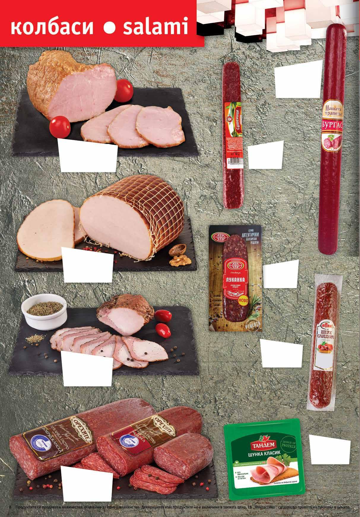 6.79 -22% 5 29 лв|бр 4.99 -20% 3 99 лв|бр 99 лв|кг 23.99 -20% 18 99 лв|кг 35.99 -22% 27 99 лв|кг 44.99 -33% 29 7.59 -23% 5 79 лв|бр 3.89 -23% 2 99 лв|бр 7.99 -25 % 5 99 лв|бр 12.99 -23% 9 99 лв|кг Свински бут варено-пушен насипен от щандова витрина СММ Салам Бургас НАШАТА ТРАПЕЗА вакуум, 300 г ЛАЛОВ И ВАЧЕВ Пуешко филе гран подере насипно от щандова витрина ЕОС Свинско филе Монтана МАДЖАРОВ насипно от щандова витрина Салам шпек сандвич БОНИ вакуум, 330 г Луканка КЕН вакуум, 180 г Шунка ТАНДЕМ Класик слайс, 220 г Сушеница ЦАРЕВЕЦ вакуум, 140 г ЕЛИТ МЕС Луканка ОРЕХИТЕ Добруджанска; Чардака Гастро насипна от щандова витрина 8 Продуктите се продават в количества, обичайни за едно домакинство. Декорацията към продуктите не е включена в тяхната цена. ТВ „Фантастико“ си запазва правото на промяна в цените.