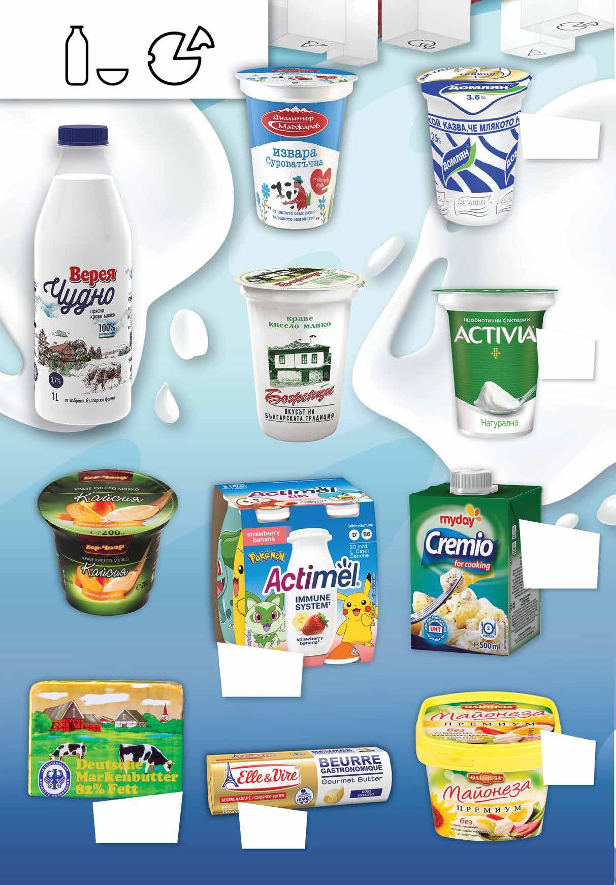 1.85 -24% 1 39 лв|бр 3.99 -25% 2 99 лв|бр 3.69 -27% 2 69 лв|бр 1.79 -24% 1 35 лв|бр 3.45 -33% 2 29 лв|бр 6.79 -41% 3 99 лв|бр 4.59 -23% 3 49 лв|оп. 12.99 -23% 9 99 лв|бр 0.89 -22% 0 69 лв|бр 6.39 -37% 3 99 лв|бр 1.69 -23% 1 29 лв|бр Mайонеза ОЛИНЕЗА Премиум 250 мл Краве масло DEUTSCHE MARKENBUTTER 250 г Кисело мляко БОЖЕНЦИ масленост 2,2% 400 г Прясно мляко ВЕРЕЯ Чудно масленост 3,7% 1 л Кисело мляко ДОМЛЯН масленост 3,6% 500 г Краве масло ELLE & VIRE 250 г Млечен десерт БОР ЧВОР различни видове 200 г Продукт за готвене MY DAY Cremio с растителни мазнини 25% 500 мл Суроватъчна извара МАДЖАРОВ 350 г