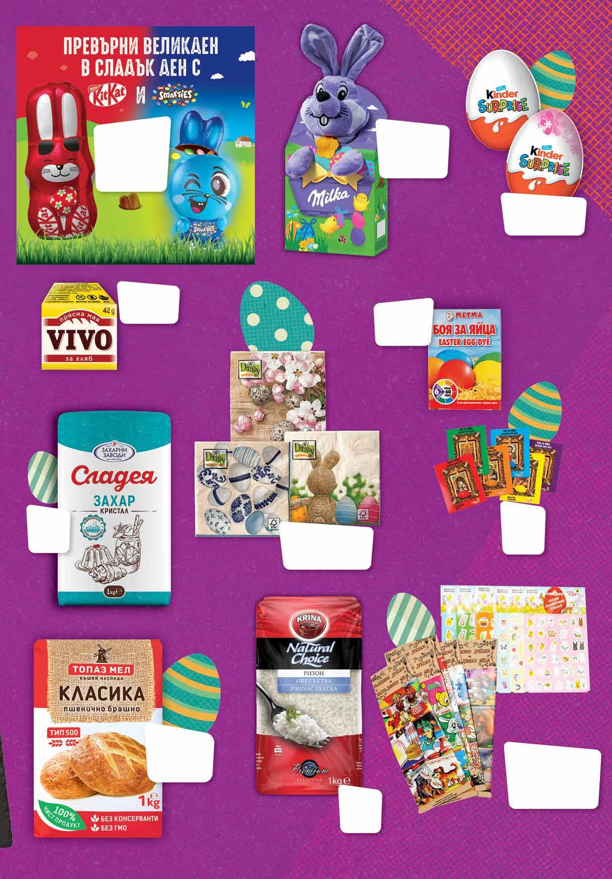 99* лв|k-кt 19.99 -35% 12 2.29 -26% 1 69 лв|бр 2 69 лв|оп. 0.99 -10% 0 89 лв|бр 0.99 -20% 0 79 лв|бр 7.49 -33% 4 99 лв|бр 1.25 -28% 0 89 лв|бр 4.79 -33% 3 19 лв|бр 1.69 -23% 1 29 лв|бр 2.69 -31% 1 85 лв|бр 2.49 -20% 1 99 лв|оп. стикери 0.99 -20% 0 79 лв|оп. бандероли Комплект MILKA играчка с лакомства 96 г *количествата са лимитирани Шоколадово яйце KINDER Surprise различни видове 20 г Великденски салфетки DAISY трипластови, 33х33 20 бр в опаковка Мая за хляб VIVO прясна, 42 г Пшенично брашно ТОПАЗ