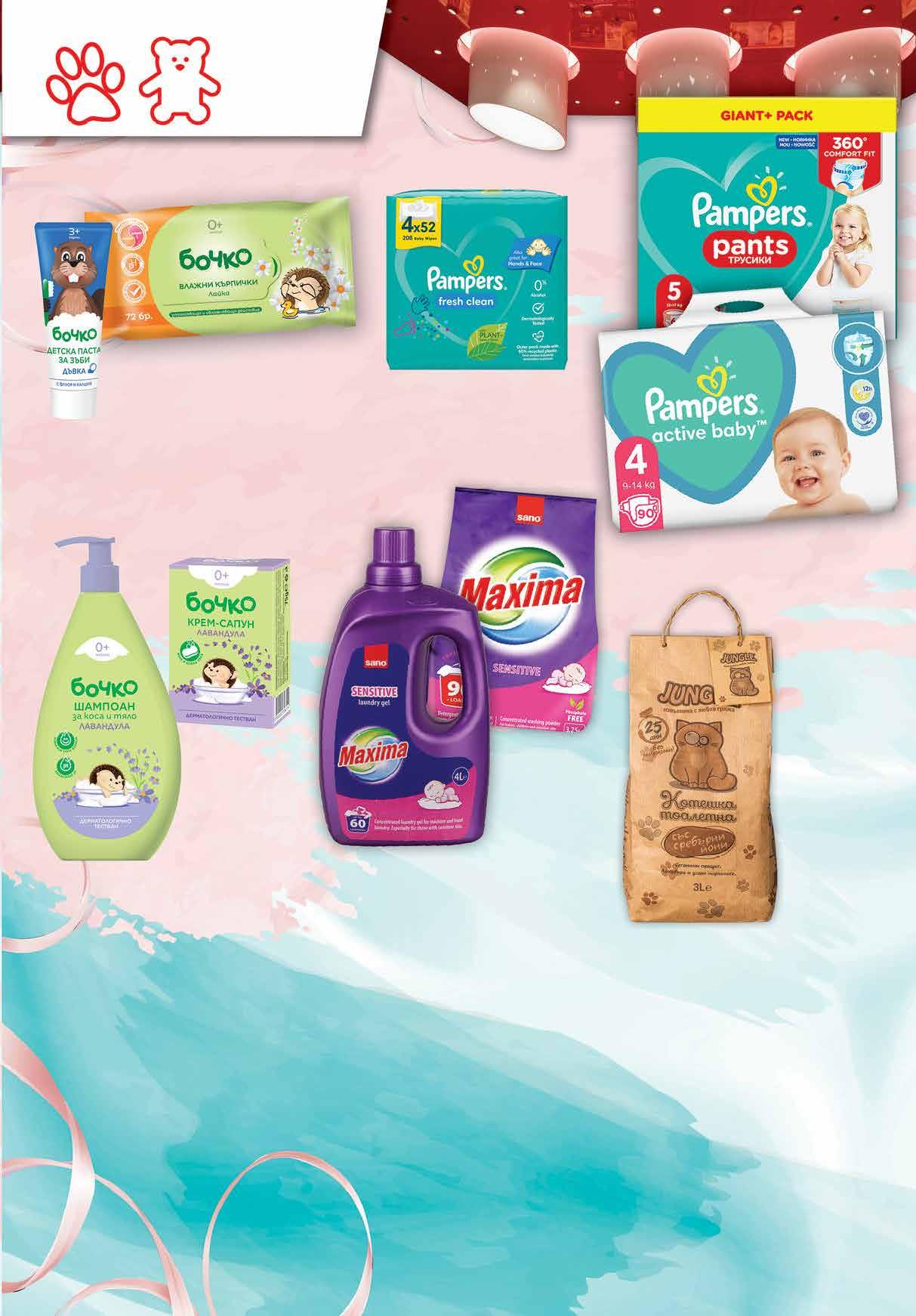 6.39 -26% 4 69 лв|бр 0.00 -00% 0 00 лв|бр 0.00 -00% 0 00 лв|бр 2 19 лв|оп. кърпички 2.79 -21% 2 19 лв|бр паста 0.00 -00% 0 00 лв|бр 99 лв|оп. 49.99 -30% 34 9 99 лв|к-т 5.89 -23% 4 49 лв|бр шампоан 1.69 -23% 1 29 лв|бр сапун 99 лв|бр 4 л 39.59 -29% 27 99 лв|бр 31.59 -30% 21 Пелени 90, 78, 68 бр в опаковка; Гащички 72, 66, 60 бр в опаковка PAMPERS Giant Pack различни размери Бебешки кърпи 72 бр в опаковка;