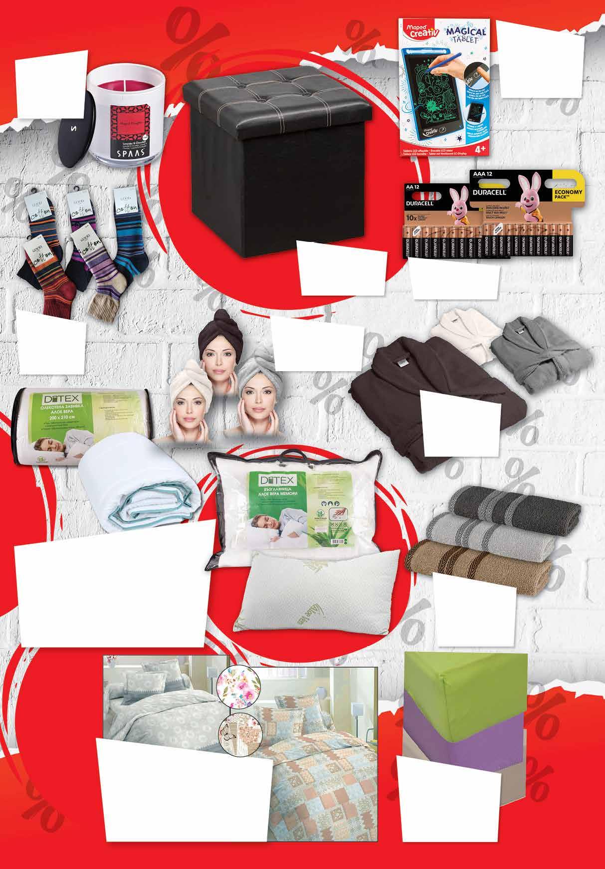 3.99 -50% 1 99 лв|бр 99 лв|бр 5 части 59.99 -50% 29 99 лв|бр 4 части 49.99 -50% 24 99 лв|бр 3 части 39.99 -50% 19 99 лв|бр 200/210 49.99 -50% 24 99 лв|бр 150/210 39.99 -52% 18 99 лв|бр възглавница 29.99 -60% 11 9.99 -50% 4 99 лв|бр 49 лв|бр 59.99 -54% 27 19.99 -50% 9 99 лв|бр 90/200 99 лв|оп. 23.99 -50% 11 49 лв|бр 160/200 24.99 -50% 12 99 лв|бр 180/200 29.99 -50% 14 19.99 -50% 9 99 лв|бр 70/140 9.99 -50% 4 99 лв|бр 50/80 3.69 -51% 1 79 лв|бр 30/50 99 лв|бр 27.49 -52% 12 99 лв|бр 39.99 -50% 19 99 лв|бр 44.99 -51% 21 Термо чорапи GOOD Класик детски №35-38; дамски №39-42; мъжки №43-46 Табуретка MUHLER есо сгъваема 3в1 различни цветове Завивка Алое Вера 150/210 см; 200/210 см • Пълнеж: 200 г/м2 • Обшивка – импрегнирана с есенция от Алое Вера. • Хипоалергeнните свойства на екстракта от Алое Вера предпазват от бактерии и микроорганизми. Възглавница Алое Вера Мемори 50/70 см; • Пълнеж: парченца от 100% мемори пяна • Обшивка – импрегнирана с есенция от Алое Вера. • Хипоалергенните свойства на екстракта от Алое Вера предпазват от бактерии и микроорганизми. Спален комплект 3 части (чаршаф 130/220см; плик 150/210 см; калъфка 50/70 см), 4 части (чаршаф 200/220 см; плик 200/210 см; 2 калъфки 50/70 см), 5 части (чаршаф 200/220 см; 2 плика 150/210 см; 2 калъфки 50/70 см) различни десени Свещ в буркан SPAAS ароматна различни видове време за горене ± 56 ч Играчка магически таблет MAPED ACTIVITIES • LCD дисплей • за творчески занимания Батерии DURACELL алкални АА 12 бр; ААА 12 бр в опаковка Чаршаф с ластик трико, едноцветен 100% памук 90/200 см; 160/200 см 180/200 см различни цветове Халат за баня Кристал DILIOS 100% памук S/M ; L/XL различни цветове Кърпа за коса тип тюрбан DILIOS 25х60 см, 100% памук различни цветове Хавлиена кърпа Кристал 100% памук 70/140 см; 50/80 см 30/50 см различни цветове 3 ТВ „Фантастико” не носи отговорност за допуснати печатни грешки. Количествата са лимитирани! Предложенията са валидни до сряда 22.00ч. на 01.02.2023 г.