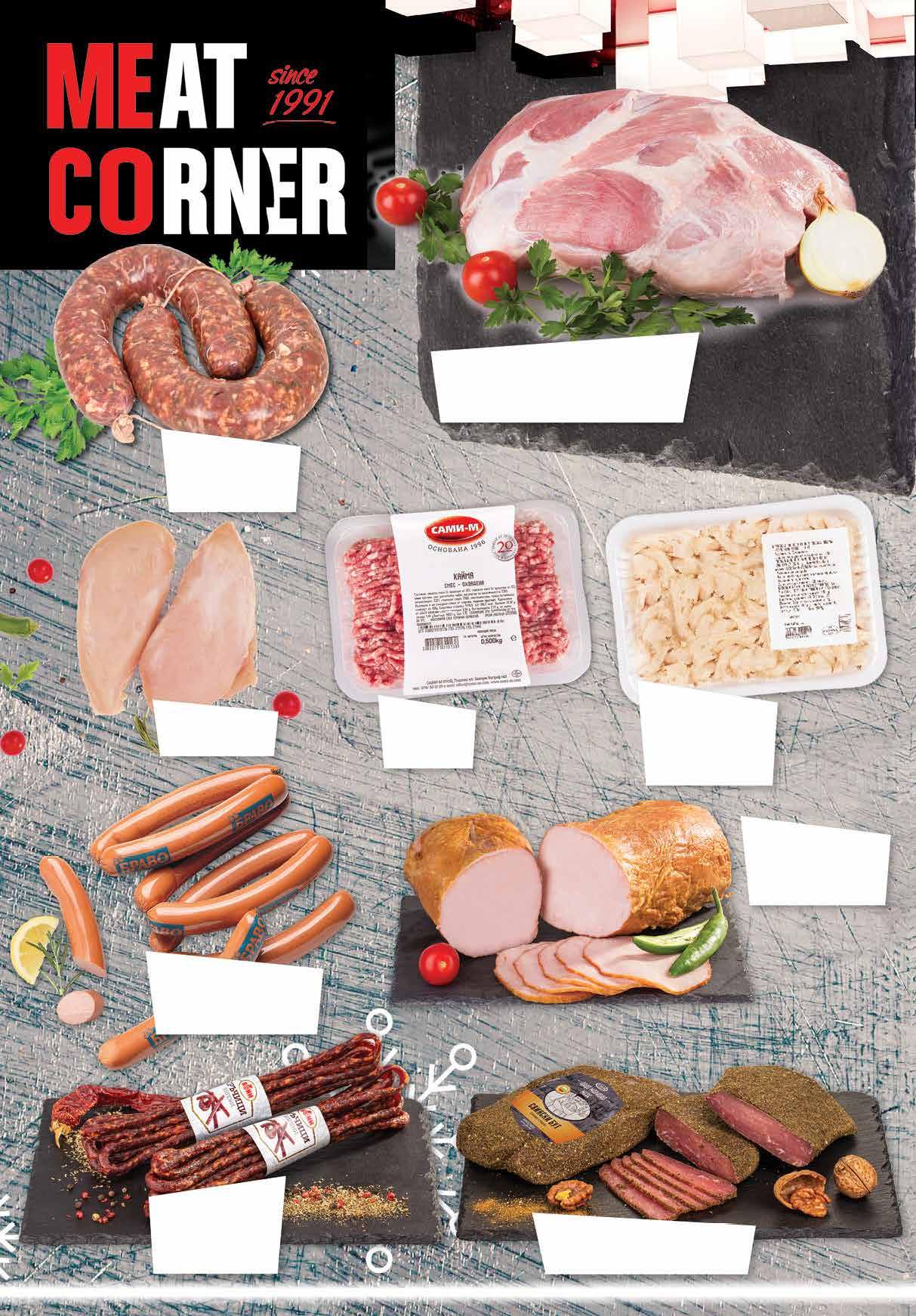 99 лв|кг 34.99 -25% 25 9.99 -26% 7 39 лв|бр 8.29 -15% 6 99 лв|бр 99 лв|кг 16.99 -23% 12 99 лв|кг 13.99 -21% 10 99 лв|кг 26.99 -25% 19 99 лв|кг 14.99 -26% 10 7.49 -26% 5 49 лв|кг 6 99 лв|кг Кайма смес САМИ-М охладена тарелка, 500 г Свинска плешка без кост охладена, насипна от щандова витрина* *Цената не важи за предварително опаковано месо Суров суджук говежди насипен от щандова витрина МК БРАТЯ РАДЕВИ Варено говеждо шкембе замразено, тарелка 1 кг РОСТАР Сурово-сушен бут Дядо Марково мезе насипен от щандова витрина Свинско филе варено-пушено насипно от щандова витрина КАЙЛЪКА Пилешки кренвирши БРАВО насипни от щандова витрина Бирени пръчици насипни от щандова витрина БОНИ Пилешко филе насипно от щандова витрина 6 Продуктите се продават в количества, обичайни за едно домакинство. Декорацията към продуктите не е включена в тяхната цена. ТВ „Фантастико“ си запазва правото на промяна в цените.