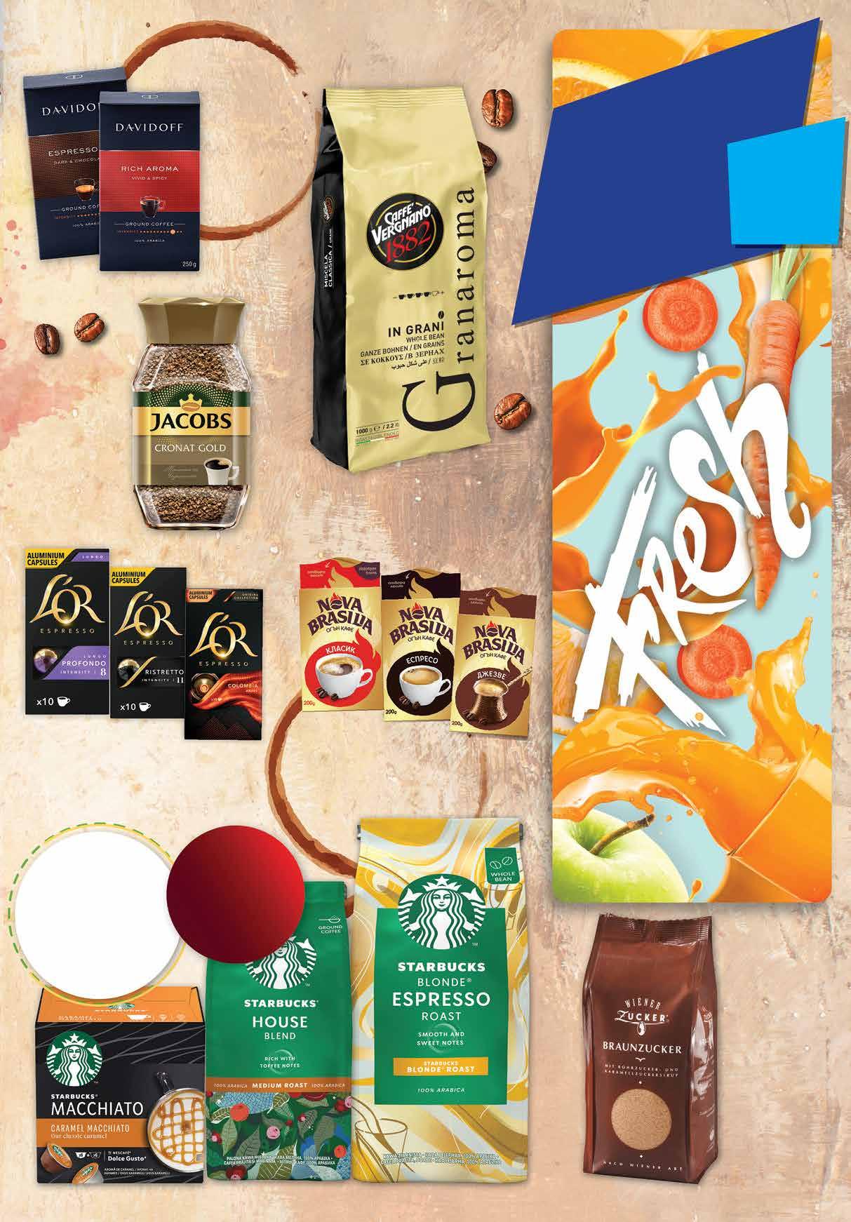 99 лв|бр 20.99 -42% 11 9.49 -21% 7 49 лв|oп. origins 8.99 -27% 6 49 лв|oп. 4.29 -30% 2 99 лв|бр 99 лв|бр 49.99 -50% 24 15.59 -42% 8 99 лв|бр 3.39 -23% 2 59 лв|бр ябълка и морков портокал Фреш портокал, ябълка и морков с отстъпка -20% *предложението е валидно за магазините със сини цени Разтворимо кафе JACOBS Cronat Gold 200 г Кафе капсули L‘OR различни видове 10 бр в опаковка *съвместими със система Nespresso Мляно кафе NOVA BRAZILIA класик; еспресо; джезве 200 г *предложението е валидно за магазините със сини цени Всички кафета с марка STARBUCKS с ОТСТЪПКА -20% Кафе на зърна VERGNANO Granaroma 1кг Мляно кафе DAVIDOFF различни видове 250 г Кафява захар WIENER ZUCKER карамелена 500 г 13 ТВ „Фантастико” не носи отговорност за допуснати печатни грешки. Количествата са лимитирани! Предложенията са валидни до сряда 22.00ч. на 01.02.2023 г.