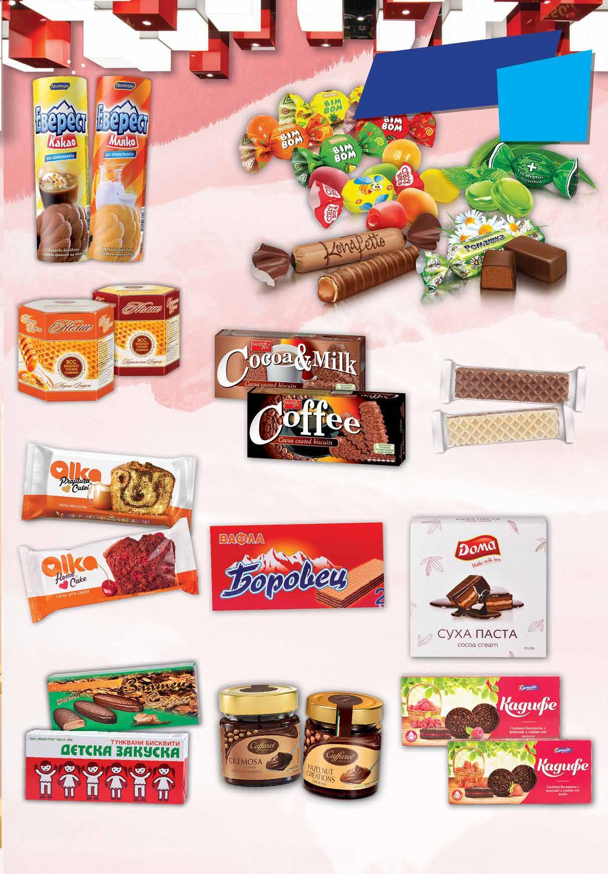 3.15 -30% 2 19 лв|бр 3.09 -32% 2 09 лв|бр 9.39 -25% 6 99 лв|бр 4.39 -31% 2 99 лв|бр 6.89 -27% 4 99 лв|бр 0.79 -25% 0 59 лв|бр 3.59 -25% 2 69 лв|бр 2.65 -32% 1 79 лв|бр 3.29 -39% 1 99 лв|бр 5.99 -28% 4 29 лв|бр Бисквити КАДИФЕ KARMELA различни видове 180 г *предложението е валидно за магазините със сини цени Всички видове насипни бонбони с марка ROSHEN с ОТСТЪПКА -20% Тунквани бисквити COFFEE/COCOA&MILK 150-160 г Суха паста DOMA различни видове 280 г Тунквани бисквити ДЕТСКА ЗАКУСКА; ЗЛАТЕН СЕЗОН 170 г Кекс ALKA мраморен 350 г; какао с вишнa 350 г; Бисквити ЕВЕРЕСТ различни видове 215 г - 220 г Вафла ХЕЛИ Ретро различни видове 60-65 г Вафли НЕЛИС медени; карамелени 192 г Вафла БОРОВЕЦ различни видове 550-630 г Какаов крем Caffarel Cremosa; Hazelnut cremosa 200 г 15 ТВ „Фантастико” не носи отговорност за допуснати печатни грешки. Количествата са лимитирани! Предложенията са валидни до сряда 22.00ч. на 01.02.2023 г.