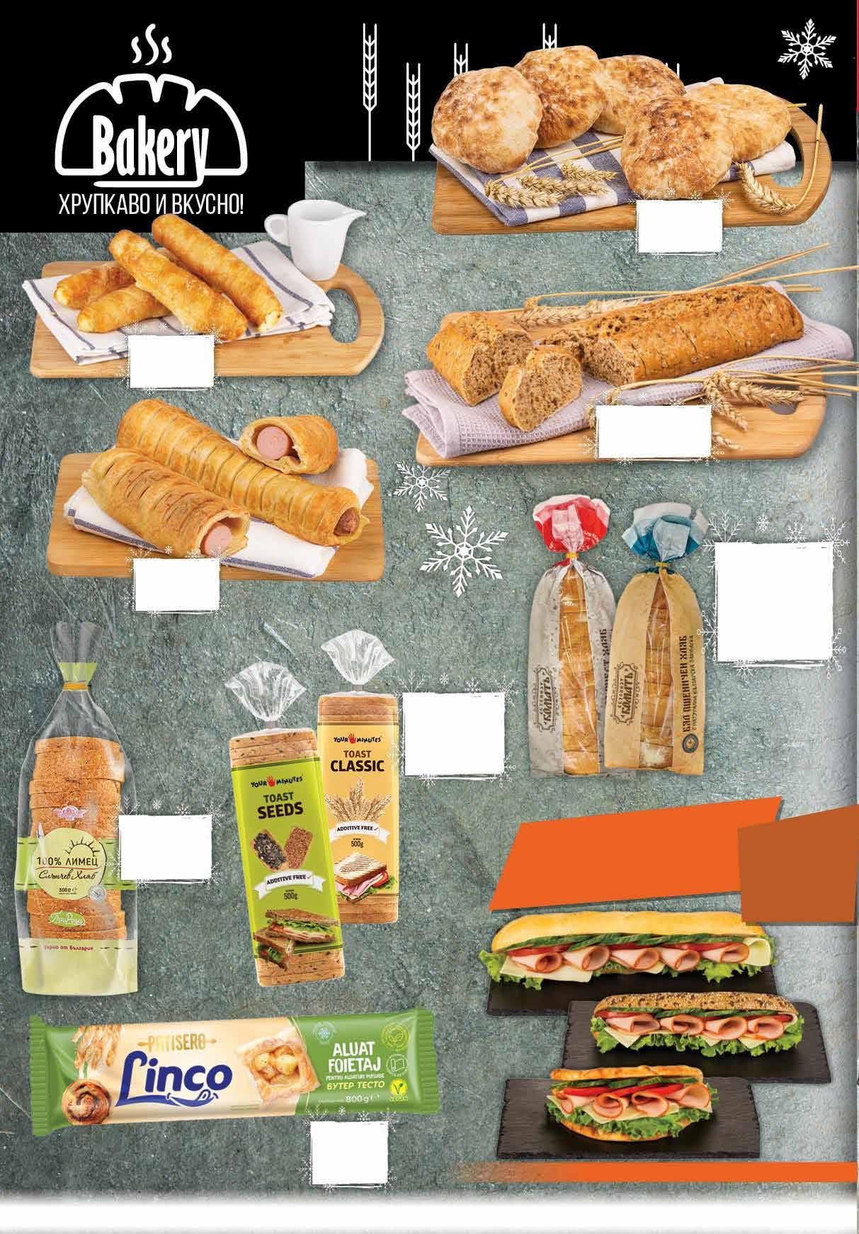 3.29 -21% 2 59 лв|бр 0.49 -48% 0 25 лв|бр 2.49 -24% 1 89 лв|бр 1.99 -20% 1 59 лв|бр 1.99 -20% 1 59 лв|бр 0 55 лв|бр 2.59 -23% 1 99 лв|бр 6.99 -42% 3 99 лв|бр Слънчев хляб от 100% лимец ЕЛИАЗ 300 г Мини пърленка 50 г Вземи сандвич с пилешко филе с отстъпка Хляб селски с ръжени кълнове 300 г Рогче с кренвирш 160 г -20% *предложението е валидно за магазините със сини цени Баница със сирене 90 г Хляб тост YOUR MINUTES класик; пшеничен със семена 500 г Хляб ВКУСНИЯТ КОМАТЪ пълнозърнест ръжена закваска; бял пшеничен с натурална закваска 500 г Бутер тесто LINCO замразено 800 г 10 Продуктите се продават в количества, обичайни за едно домакинство. Декорацията към продуктите не е включена в тяхната цена. ТВ „Фантастико“ си запазва правото на промяна в цените.