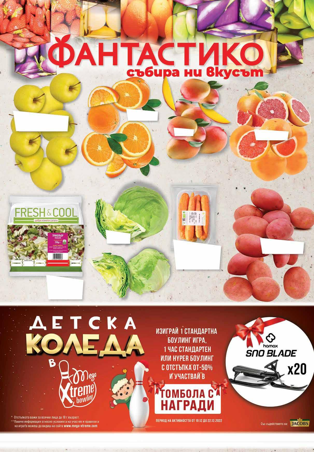 2.49 -28% 1 79 лв|бр 1.99 -25% 1 49 лв|кг 2.19 -31% 1 49 лв|кг 2.69 -26% 1 99 лв|кг 1.99 -25% 1 49 лв|кг 2.79 -35% 1 79 лв|бр 4.19 -23% 3 19 лв|бр 1 59 лв|бр Манго Мити червени картофи Портокали Салата айсберг Био моркови ФЕРМА МОРАВСКО СЕЛО произход България 500 г Ябълки Златни произход България Грейпфрути Салата Трикольор FRESH&COOL 250 г Продуктите, обозначени с този символ, са с БЪЛГАРСКИ произход. Снимките са с илюстративна цел. ТВ „Фантастико” не носи отговорност за допуснати печатни грешки. Количествата са лимитирани! Предложенията са валидни до сряда 22.00 ч на 21.12.2022 г.