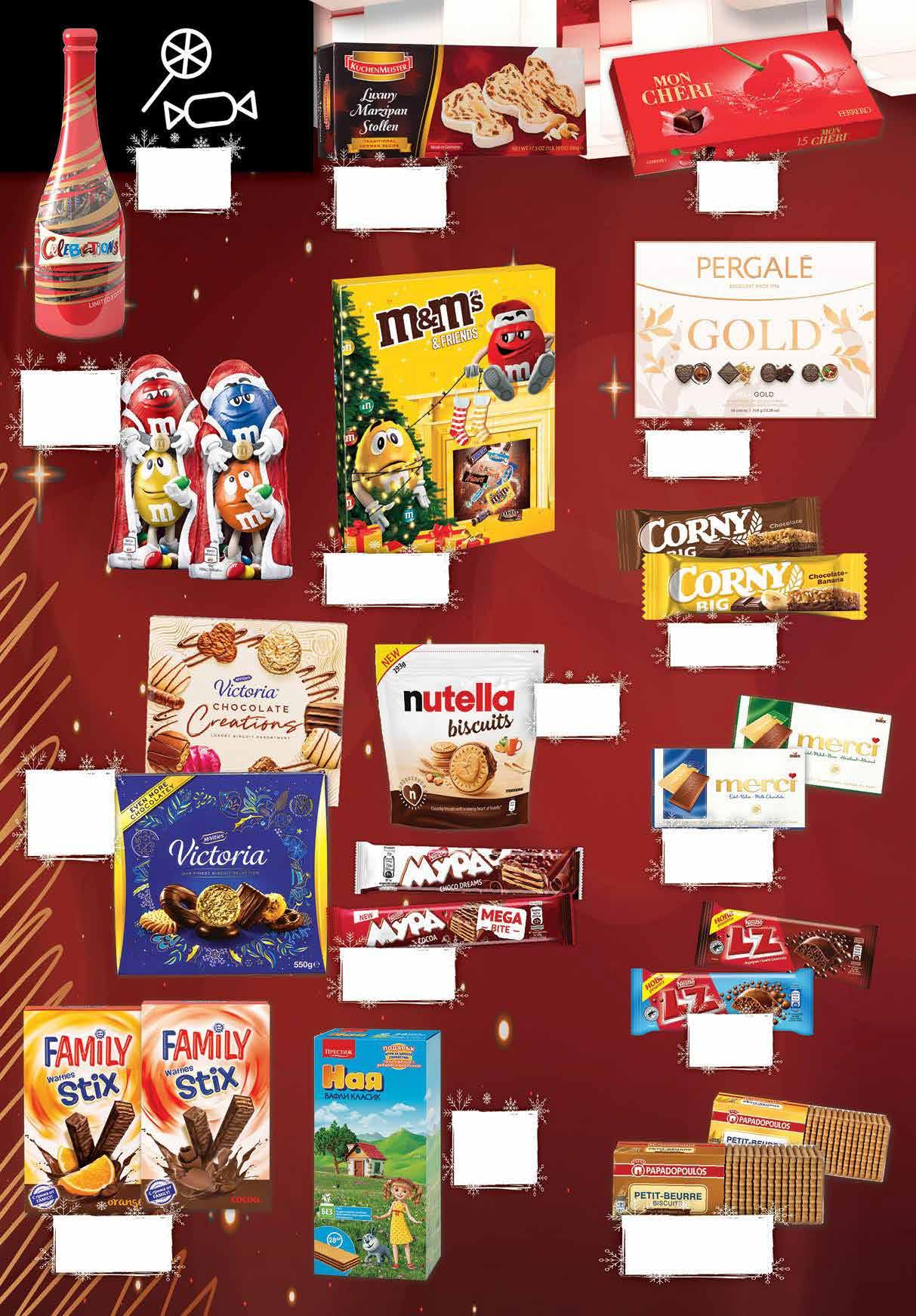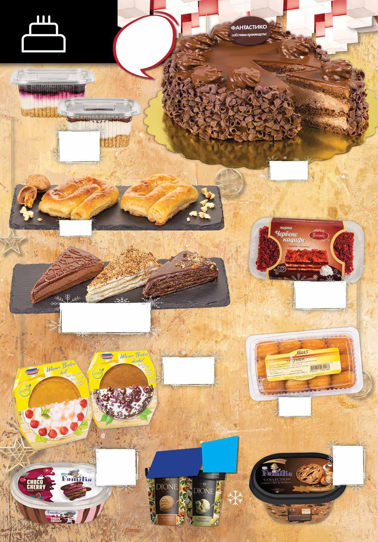 6.49 -33% 4 29 лв|бр 3.19 -25% 2 39 лв|бр 6.69 -25% 4 99 лв|бр 7.69 -24% 5 79 лв|бр 8.99 -22% 6 99 лв|бр 11.99 -35% 7 79 лв|бр 5.99 -20% 4 79 лв|бр 99 лв|бр 15.99 -25% 11 59 лв|бр 22.99 -23% 17 99 лв|бр selection 22.99 -26% 16 99 лв|бр creation 27.99 -28% 19 0.79 -37% 0 49 лв|бр 2.39 -25% 1 79 лв|бр 3.99 -25% 2 99 лв|бр 1.09 -27% 0 79 лв|бр 1.65 -27% 1 19 лв|бр Шоколад LZ различни видове, 36 г Вафли НАЯ различни видове 600 - 653 г Вафла МУРА различни видове 33-45 г Шоколад MERCI различни видове 100 г БОНБОНИ CELEBRATION бутилка 312 г Коледен календар M&M & FRIENDS 316 г Коледна бисквитиера VICTORIA selection 550 г; creations 400 г Вафли FAMILY STIX различни видове 155 г Бисквити NUTELLA 197 г Бонбони MON CHERI 157,5 г Бонбони PERGALE GOLD асорти, 348 г Коледен щолен KUCHENMEISTER марципан 500 г Шоколадова фигурка Дядо Коледа MM‘S 100 г * лимитирани количества * лимитирани количества * лимитирани количества * лимитирани количества Бисквити Petit-Beurre PAPADOPOULOS класик; пълнозърнести 225 г Десерт CORNY различни видове 40-50 г 14 Продуктите се продават в количества, обичайни за едно домакинство. Декорацията към продуктите не е включена в тяхната цена. ТВ „Фантастико“ си запазва правото на промяна в цените.