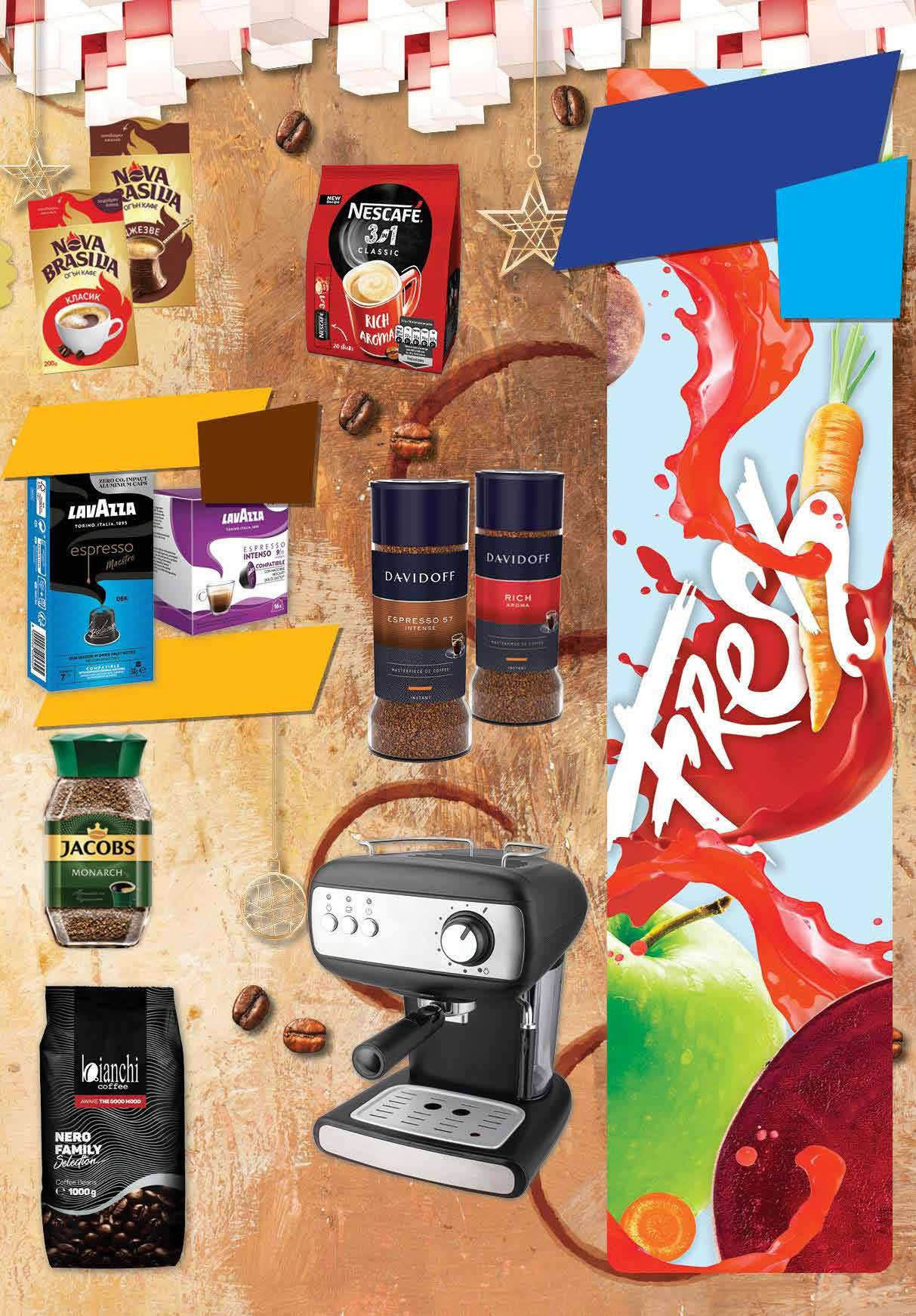 10.99 -40% 6 59 лв|бр 8.19 -39% 4 99 лв|пакет 99 лв|бр 30.99 -25% 22 15.99 -43% 8 99 лв|бр 99 лв|бр 129.99 -23% 99 4.29 -30% 2 99 лв|бр *предложението е валидно за магазините със сини цени и не важи за пакет Lavazza Dolce Gusto 2+1 от 48 бр в опаковка Мляно кафе NOVA BRASILIA различни видове 200 г Разтворимо кафе DAVIDOFF различни видове 100 г Разтворимо кафе NESCAFE 3in1 Classic 20 бр х 16,5 г пакет Кафе на зърна BIANCHI Nero Family Selection 1 кг Кафемашина CROWN СЕМ-1525 15 бара • крема диск • функция за пара Кафе капсули с марка LAVAZZA с отстъпка -25% Разтворимо кафе JACOBS Monarch различни видове 100 г цвекло, ябълка и морков цвекло,Фрешябълка и морков с отстъпка -33% *предложението е валидно за магазините със сини цени 13 ТВ „Фантастико” не носи отговорност за допуснати печатни грешки. Количествата са лимитирани! Предложенията са валидни до сряда 22.00ч. на 21.12.2022 г.