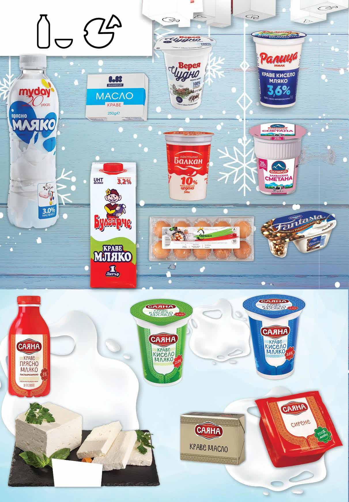 7.99 -33% 5 29 лв|бр 1.49 -26% 1 09 лв|бр 1.69 -26% 1 25 лв|бр 89 лв|кг 21.59 -31% 14 1.99 -25% 1 49 лв|бр 6.79 -30% 4 69 лв|бр 3.79 -31% 2 59 лв|бр 3.29 -24% 2 49 лв|бр 1.95 -23% 1 49 лв|бр 1.99 -30% 1 39 лв|бр 4.99 -28% 3 59 лв|бр 4.29 -25% 3 19 лв|бр 5.69 -21% 4 49 лв|бр 1.95 -20% 1 55 лв|бр 6.59 -24% 4 99 лв|бр Сирене от овче мляко САЯНА насипно от щандова витрина Прясно мляко САЯНА масленост 3% 500 мл Краве масло САЯНА 250 г Кисело мляко САЯНА масленост 2% 400 г Кисело мляко САЯНА масленост 3,6% 400 г Сирене от краве мляко САЯНА вакуум, 400 г Прясно мляко MY DAY масленост 3% 1 л Прясно мляко БУЛГАРЧЕ масленост 3,2% UHT, 1 л Кисело мляко ВЕРЕЯ Чудно масленост 5% 400 г Мляко кисело РАЛИЦА масленост 3,6% 400 г Кисело мляко тип цедено БАЛКАН масленост 10% 500 г Заквасена сметана OLYMPUS масленост 20% 350 г Десерт DANONE FANTASIA различни видове 100-106 г Краве масло ЕЛ БИ 250 г Яйца АКВИЛОН размер M 10 бр в опаковка 4 Продуктите се продават в количества, обичайни за едно домакинство. Декорацията към продуктите не е включена в тяхната цена. ТВ „Фантастико“ си запазва правото на промяна в цените.