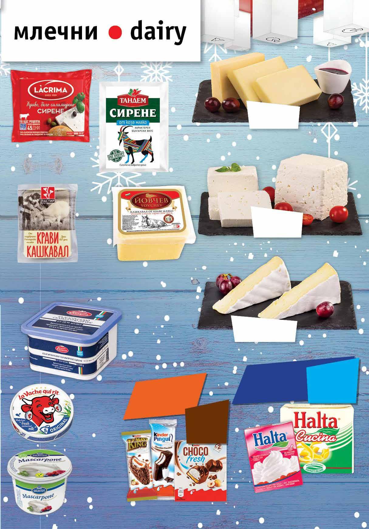 89 лв|кг 24.99 -32% 16 99 лв|кг 27.99 -21% 21 99 лв|кг 18.99 -21% 14 99 лв|бр 16.59 -21% 12 99 лв|бр 17.79 -26% 12 59 лв|бр 13.69 -22% 10 99 лв|бр 18.99 -26% 13 8.99 -22% 6 99 лв|бр 10.99 -21% 8 59 лв|бр 3.99 -32% 2 69 лв|бр Сирене БРИ GRAN D‘ORO от деликатесна витрина Краве сирене РОДОПИНО насипно от щандова витрина Кашкавал от краве мляко БУЛГАРЧЕ от голяма пита Сирене от краве мляко LACRIMA по БДС вакуум, 700 г Сирене от овче мляко МАДЖАРОВ по БДС кутия, 500 г Кашкавал от краве мляко ПАСТИР вакуум, 400 г Сирене от козе мляко ТАНДЕМ вакуум, 300 г Всички охладени десерти с марка KINDER с *предложението е валидно за магазините със сини цени отстъпка -20% Всички готварски и сладкарски кремове от 200 и 500 мл с марка HALTA с отстъпка -25% *предложението е валидно за магазините със зелени цени Маскарпоне GOLDSTEIG 500 г Топено сирене LA VACHE QUIRIT различни видове 120 г Кашкавал от краве мляко ЙОВЧЕВ вакуум, 480 г 5 ТВ „Фантастико” не носи отговорност за допуснати печатни грешки. Количествата са лимитирани! Предложенията са валидни до сряда 22.00ч. на 21.12.2022 г.