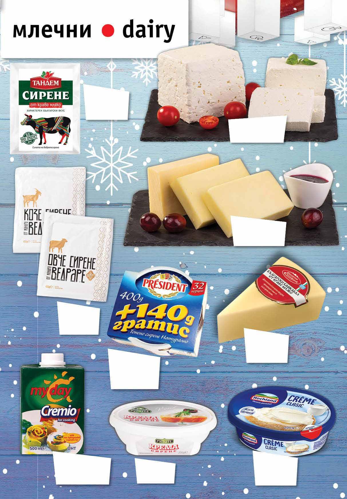 6.39 -21% 4 99 лв|бр 8.99 -22% 6 99 лв|бр 3.79 -21% 2 99 лв|бр 99 лв|бр 13.99 -21% 10 99 лв|бр 14.99 -20% 11 99 лв|кг 16.99 -35% 10 89 лв|кг 23.49 -28% 16 4.49 -24% 3 39 лв|бр 9 49 лв|к-т Кашкавал от краве мляко БЕЛЕНСКО от голяма пита Крема сирене РУПИТЕ 200 г Кашкавал от краве мляко МАДЖАРОВ по БДС вакуум, 420 г Сирене от краве мляко ТАНДЕМ вакуум, 400 г Сирене от краве мляко САЯНА насипно от щандова витрина Сирене от козе или овче мляко VEDRARE вакуум, 400 г Продукт за готвене MY DAY Cremio с растителни мазнини 25% 500 мл Комплект* топено сирене PRESIDENT 400 г + 140 г *количествата са лимитирани Крем сирене HOCHLAND различни видове 200 г 3 ТВ „Фантастико” не носи отговорност за допуснати печатни грешки. Количествата са лимитирани! Предложенията са валидни до сряда 22.00ч. на 04.01.2023 г.