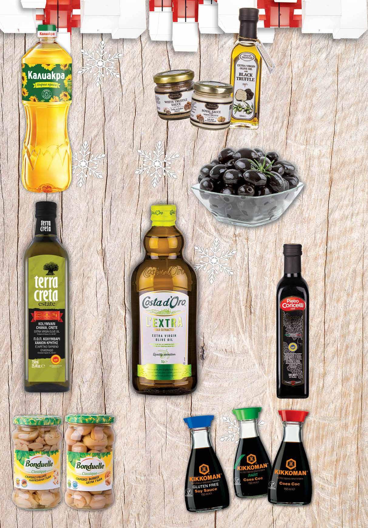 99 лв|бр 23.99 -45% 12 5.49 -18% 4 49 лв|бр 12.99 -28% 9 29 лв|кг 99 лв|бр 19.99 -35 % 12 4.99 -20% 3 99 лв|бр 4.99 -26% 3 69 лв|бр 9.39 -36% 5 99 лв|бр без глутен 8.49 -29% 5 99 лв|бр 11.99 -25% 8 99 лв|бр паста 12.99 -23% 9 99 лв|бр масло Балсамов оцет PIETRO CORICELLI 500 мл Паста с бял трюфел 80 г; Паста с черен трюфел 80 г Маслиново масло с черен трюфел 100 мл THRACIAN TRUFFLES Соев сос KIKKOMAN различни видове 150 мл Слънчогледово олио КАЛИАКРА Първа преса 1 л Гъби BONDUELLE нарязани; цели 314 мл Маслиново масло Екстра Върджин COSTA d‘ORO 1 л Маслиново масло Екстра Върджин TERRA CRETA 750 мл Черни маслини супер супер мамут насипни от щандова витрина 11 ТВ „Фантастико” не носи отговорност за допуснати печатни грешки. Количествата са лимитирани! Предложенията са валидни до сряда 22.00ч. на 04.01.2023 г.