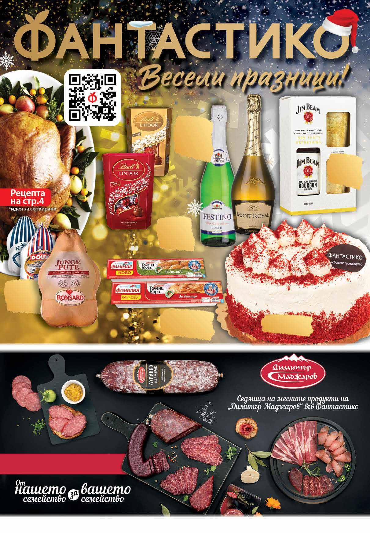 99 лв|бр 29.99 -23% 22 8 99 лв|кг 5.59 -28% 3 99 лв|бр 3.99 -25% 2 99 лв|бр 99 лв|бр 18.99 -31% 12 99 лв|бр 25.99 -23% 19 Бърбън JIM BEAM 700 мл + 2 ниски чаши Пуйка* замразена произход Франция *количествата са лимитирани. Различните марки замразена пуйка може да се намерят в различни обекти от ТВ „ФАНТАСТИКО“. Фини точени кори ФАМИЛИЯ за баница 500 г; за баклава 400 г ПЕРИОД НА ПРЕДЛОЖЕНИЕТО: 22.12-28.12.2022 Бонбони LINDOR различни видове 337 г Торта Червено кадифе 900 г Пенливо вино MONT ROYAL; FESTINO Bianco 750 мл www.fantastico.bg fantastico.stores ОФЕРТА ЗА ПЕРИОДА от 22 .12.2022 г. до 22.00 ч . на 04.01.2023 г.