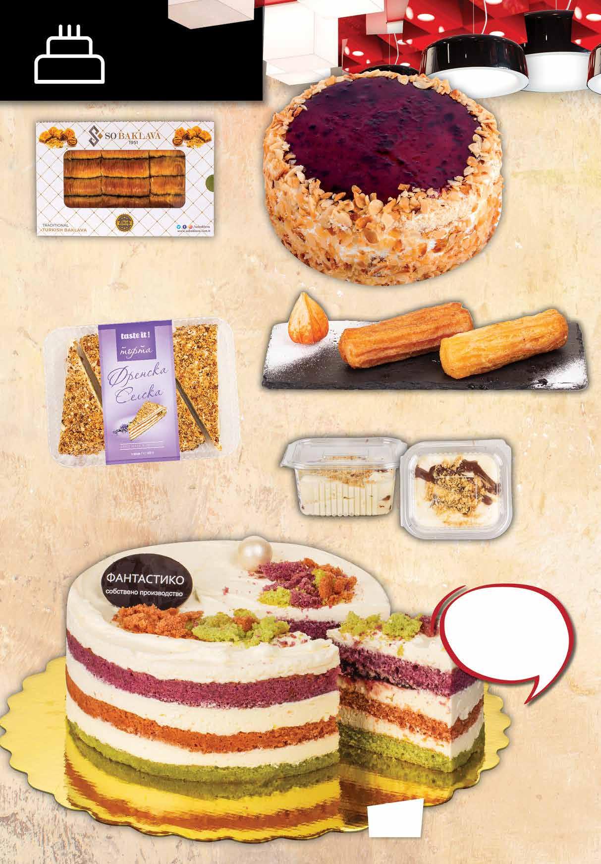 39 лв|бр 18.99 -24% 14 89 лв|бр 14.99 -27% 10 89 лв|бр 16.99 -30% 11 1.09 -31% 0 75 лв|бр 99 лв|бр 24.99 -32% 16 4.79 -25% 3 59 лв|бр МОРКОВЕНА 4.59 -26% 3 39 лв|бр БИСКВИТЕНА Торта Рейнбоу 750 г Баклава бурма с орехи SO BAKLAVA 600 г Пухкави кексовиблатове с лек иефирен млечен креми приятен вкус наборовинки. Торта МЛЕЧЕН ЕКЛЕР 750 г Тулумба 70 г Торта TASTE IT Френска Селска 4 парчета, 480 г Бисквитена торта 200 г; Морковена торта 160 г 12 Продуктите се продават в количества, обичайни за едно домакинство. Декорацията към продуктите не е включена в тяхната цена. ТВ „Фантастико“ си запазва правото на промяна в цените.