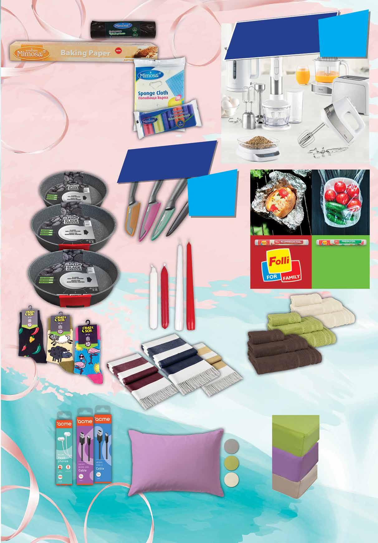 10.49 23% 7 99 лв|бр 50/90 3.69 21% 2 89 лв|бр 30/50 4.99 -20% 3 99 лв|бр 1.55 -23% 1 19 лв|бр 1.79 -22% 1 39 лв|бр конус 1 89 лв|бр алумин. 99 лв|бр 70/140 21.99 -22%9916 лв|бР 27.99 -21% 21 99 лв|бр 160/200 18.99 -21% 14 99 лв|бр 180/200 21.59 -21% 16 99 лв|бр 90/200 14.49 -24% 10 3.39 -20% 2 69 лв|бр хартия 1.69 -20% 1 35 лв|бр гъба 1.79 -22% 1 39 лв|бр кърпа 4 49 лв|бр 2.35 -21% 1 85 лв|бр торби 1 39 лв|бр опак.99 лв|бр 32 см 29.99 -50% 14 49 лв|бр 34 см 32.99 -50% 16 49 лв|бр 28 см 24.99 -50% 12 11.99 -33% 7 99 лв|бр слушалки 10.99 -33% 7 29 лв|бр USB TYPE C 6.99 -34% 4 59 лв|бр micro usb Калъфка за възглавница ранфорс, едноцветна 50/70 см различни цветове Хавлиена кърпа бамбук 550 г 30/50 см; 50/90 см; 70/140 см различни цветове отстъпка отстъпка mинимум -30% -30% Всички ножове с марка TEFAL Fresh с Всички уреди с марка HOMA CADIS с Чаршаф с ластик трико едноцветен 90/200 см; 160/200 см 180/200 см различни цветове *предложението е валидно за магазините със сини цени *предложението е валидно за магазините със сини цени Чорапи височина над глезена CRAZY SOX дамски № 35-39; мъжки № 40-45 различни видове Одеяло АЛЯСКА 140/200см различни цветове Свещ бяла; червена Кръгла тава BRIO Black Stone покритие 28см; 32см; 34см Хартия за печене 8 м х 29 см; Toрби за смет 80 л х 10 бр Домакинска гъба 5 броя Попивателна кърпа 16х14см, 3 бр MIMOSA Опаковъчно фолио 20мх29 см Алуминиево фолио 10мх29 см FOLLI Слушалки HE21W тапи с микрофон бели; Кабел USB TYPE C CB1041 черен 1 м; КАБЕЛ USB MICRO CB1011 черен 1 м ACME 21ТВ „Фантастико” не носи отговорност за допуснати печатни грешки. Количествата са лимитирани! Предложенията са валидни до сряда 22.00ч. на 26.10.2022 г.