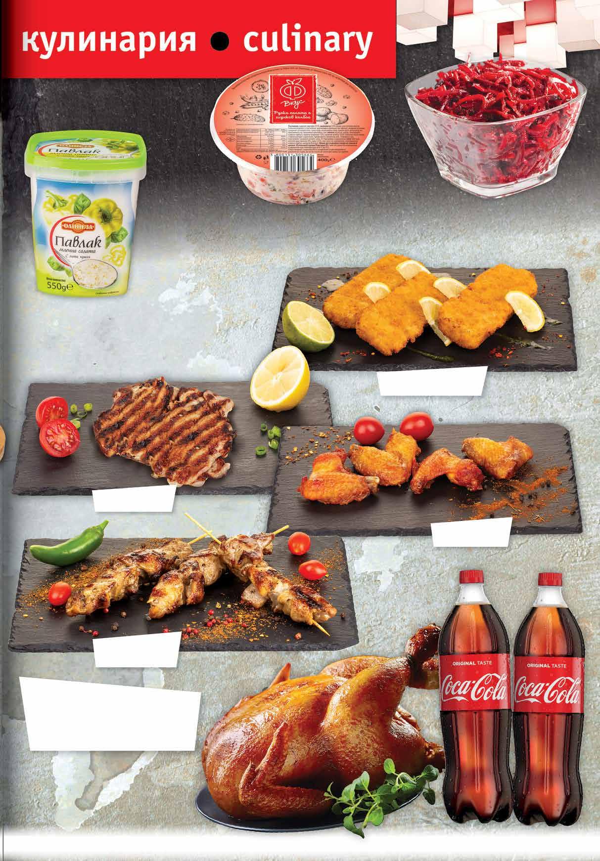 2.79 -28% 1 99 лв|бр 99 лв|к-т 16.87 -23% 12 2.39 -29% 1 69 лв|бр 1.09 -27% 0 79 лв|бр 3.19 -28% 2 29 лв|бр 8.70 -31% 5 99 лв|кг 1.99 -20% 1 59 лв|бр 11.49 -25% 8 59 лв|бр Салата Витамина ДЕНИТО насипна от щандова витрина Руска салата с шунков колбас Ф ВКУС 400 г Млечна салата Павлак ОЛИНЕЗА 550 г Печено свинско шишче Печени пилешки крила + Печена пилешка пържола от бут 12,89 + 1,99+ 1,99 = Печено пиле + 2* бр х COCA-COLA или COCA-COLA без захар 1 л *от един и същи вид Панирано рибно филе със сирене 11ТВ „Фантастико” не носи отговорност за допуснати печатни грешки. Количествата са лимитирани! Предложенията са валидни до сряда 22.00ч. на 26.10.2022 г.