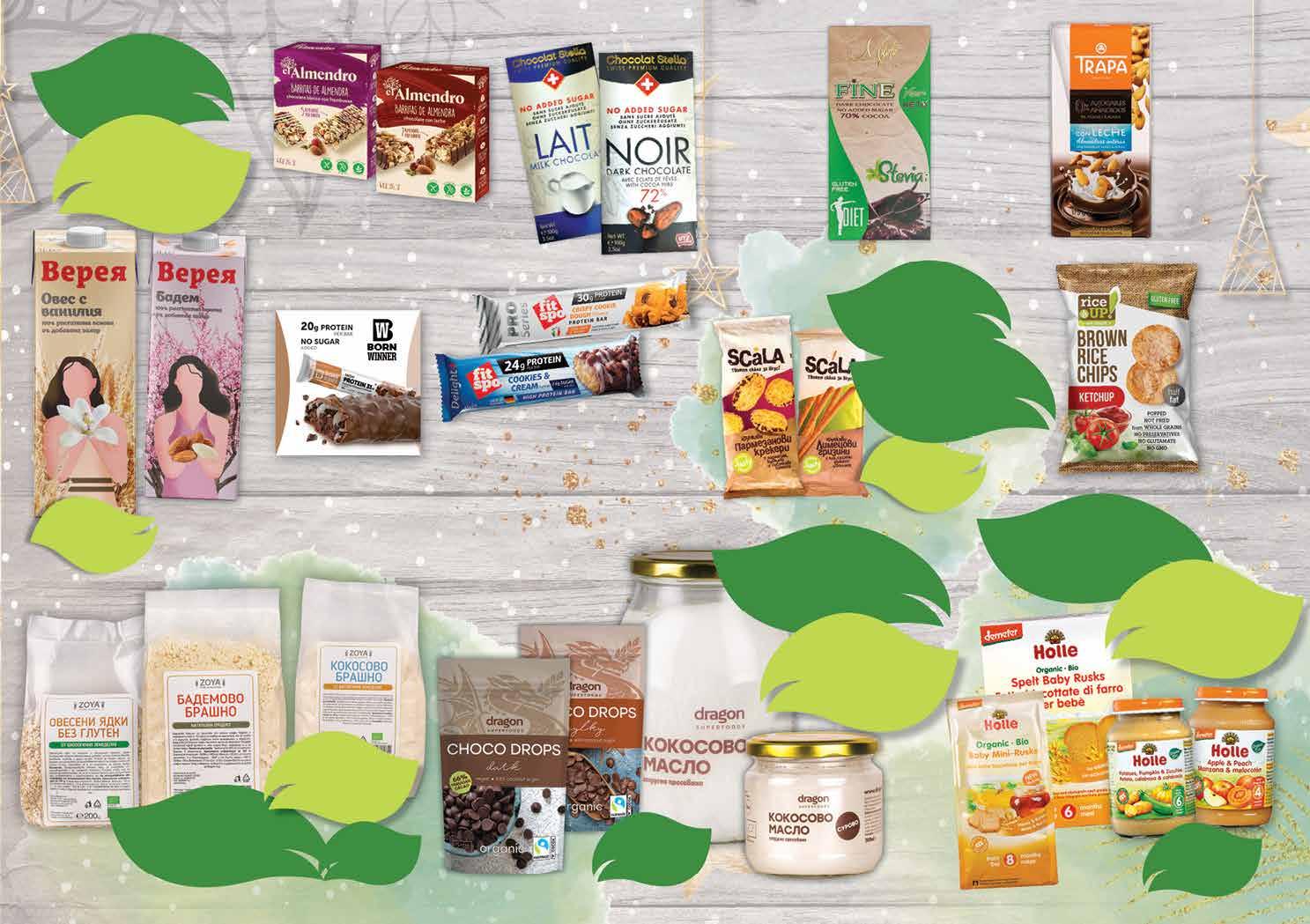 5.99 -25% 4 49 лв|бр 1.85 -30% 1 29 лв|бр 4.59 -21% 3 59 лв|бр 5.39 -25% 3 99 лв|бр 4.59 -26% 3 39 лв|бр pro 3.99 -25% 2 99 лв|бр Delight 6.39 -21% 4 99 лв|бр 4.59 -21% 3 59 лв|бр Оризов чипс RICE UP различни видове 60 г отстъпка -25% отстъпка -23% Протеинов бар FIT SPO PRO Delight бисквита с крем 65 г; Pro бисквита 85 г Сладки крекери и гризини с марка SCALA с Всички ядкови млека с марка ВЕРЕЯ с отстъпка -25% *предложението е валидно за магазините със сини цени *предложението е валидно за магазините със сини цени Шоколад без захар TRAPA какао 80% с бадем 20%; млечен с бадем 20% 175 г Шоколад MILETE различни видове без глутен, 80 г Шоколад STELLA черен 53%; тъмен със стевия; тъмен 72%; млечен с лешници; млечен без захар 100 г Протеинов бар BW Deluxe крънчи шоко брауни 64 г Бадемово барче EL ALMENDRO различни видове 100 г Брашно, овесени ядки, канела, кокосови стърготини и кокосово мляко с марка ZOYA с Кокосово, какаово масло и шоколадови капки с марка DRAGON SUPERFOODS с Сухари и пюрета с марка HOLLE с отстъпка отстъпка -20% -20% *предложението е валидно за магазините със сини цени *предложението е валидно за магазините със сини цени *предложението е валидно за магазините със зелени цени 11 ТВ „Фантастико” не носи отговорност за допуснати печатни грешки. Количествата са лимитирани! Предложенията са валидни до сряда 22.00ч. на 02.01.2023 г.