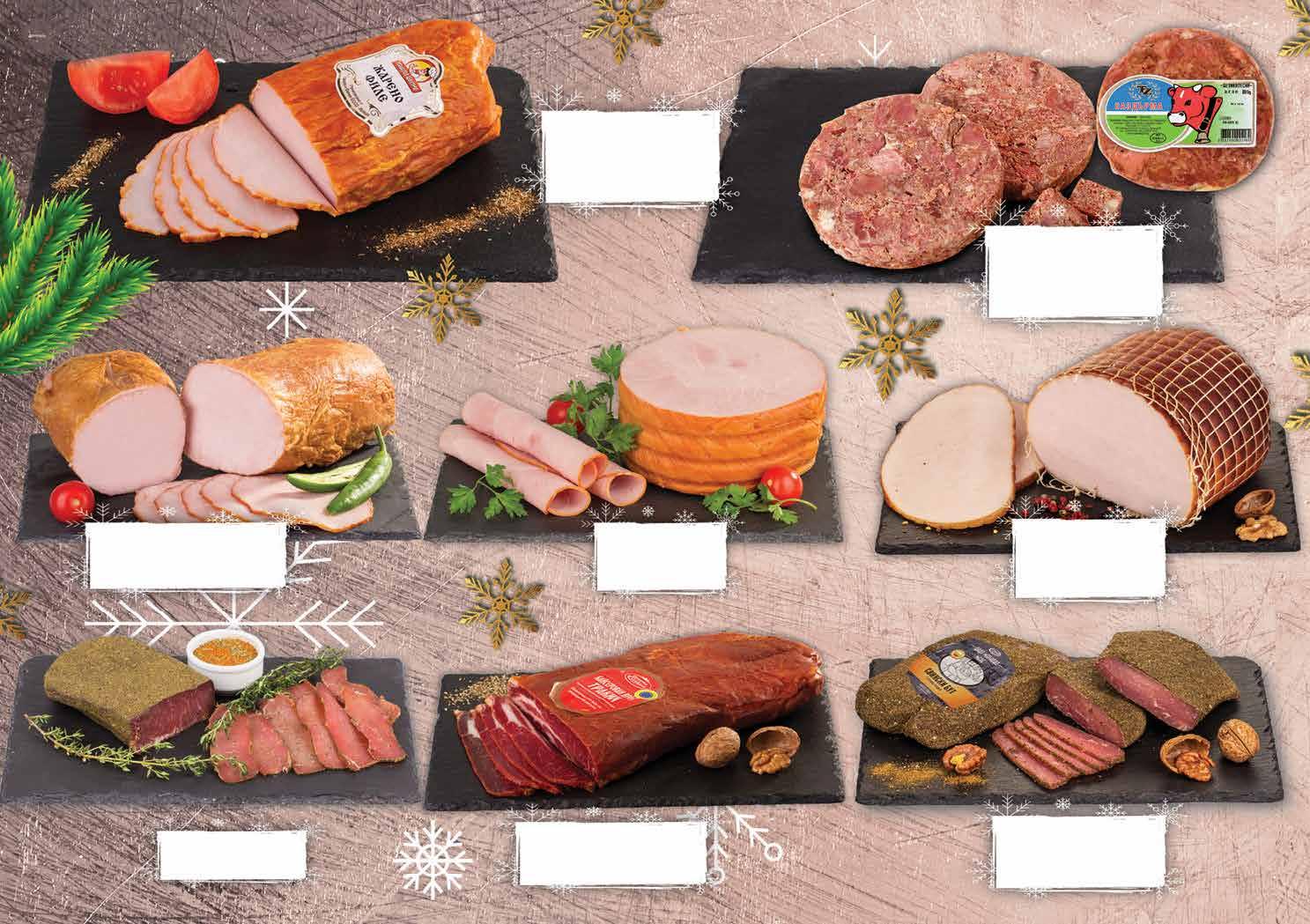 99 лв|к-т 14 9.49 -21% 7 49 лв|бр 8.99 -22% 6 99 лв|бр 6.49 -23% 4 99 лв|бр 7.29 -20% 5 79 лв|бр 8.99 -22% 6 99 лв|бр 6.79 -26% 4 99 лв|бр луканка 8.19 -26% 5 99 лв|бр филе 9.89 -29% 6 99 лв|бр 6.99 -22% 5 39 лв|бр 9.39 -25% 6 99 лв|бр луканка 10.49 -23% 7 99 лв|бр суджук Телешки суджук сурово-сушен Блек Ангъс Премиум ХАРМАНЛИ вакуум, 160 г Комплект ТАНДЕМ Майстор в занаята луканка 170 г + суджук 160 г Луканка Неврокопска ДЕЛИКАТЕСЕН резерва кутия, 230 г Салам Шпек MK БРАТЯ РАДЕВИ пресен; деликатесен вакуум, 300 г Колбас Мелник МЕСКО вакуум, 230 г 8.29 -39% 4 99 лв|бр Салам шпек Сух шпек; Бургас; Чардака вакуум, 230 г Луканка Карловска БОНИ класик; старопланинска вакуум, 210 г Луканка Панагюрска Филе Елена МОЛЕРИТЕ слайс, 150 г Телешки суджук ЕКО МЕС слайс 160 г Луканка КЕН вакуум, 180 г Телешка луканка; Телешки суджук; МОЛЕРИТЕ Домашна рецепта вакуум, 170 г *предложението е валидно за магазините със сини цени Всички буркани с марка ДЕЛИКАТЕСЕН с ОТСТЪПКА МИНИМУМ -20% 6 Продуктите се продават в количества, обичайни за едно домакинство. Декорацията към продуктите не е включена в тяхната цена. ТВ „Фантастико“ си запазва правото на промяна в цените.