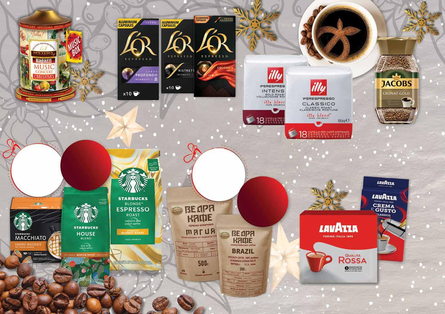 7.99 -28% 5 69 лв|бр Crema 99 лв|оп. 25.99 -23% 19 99 лв|бр 23.99 -29% 16 99 лв|к-т qualita 15.89 -24% 11 9.49 -21% 7 49 лв|oп. origins 8.99 -22% 6 99 лв|oп. 99 лв|бр 20.99 -42% 11 Разтворимо кафе JACOBS Cronat Gold 200 г Комплект мляно кафе LAVAZZA Qualita Rossa 2 x 250 г Мляно кафе LAVAZZA Crema e Gusto 250 г Мляно кафе* SPETEMA Ragazzi музикална кутия 200 г *количествата са ограничени Кафе капсули L OR различни видове 10 бр в опаковка *съвместими със система Nespresso Кафе капсули ILLY classico; intenso Iperespresso 18 бр в опаковка *предложението е валидно за магазините със сини цени Всички кафета с марка ВЕДРА КАФЕ с *предложението е валидно за магазините със сини цени Всички кафета с марка STARBUCKS с ОТСТЪПКА -20% ОТСТЪПКА -20% 22 Продуктите се продават в количества, обичайни за едно домакинство. Декорацията към продуктите не е включена в тяхната цена. ТВ „Фантастико“ си запазва правото на промяна в цените.