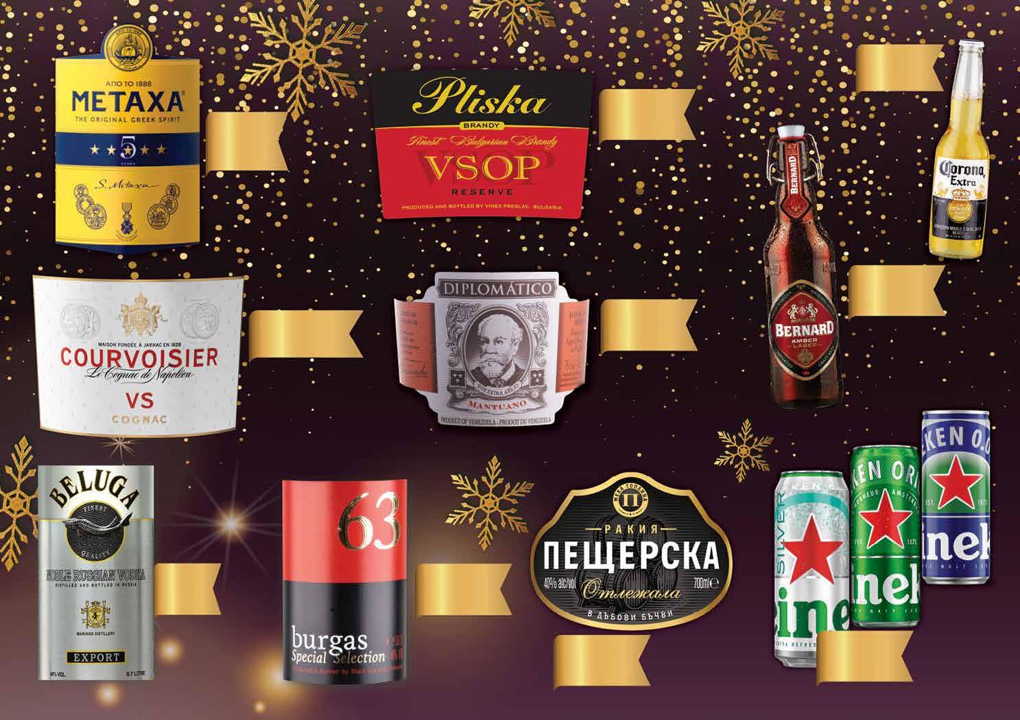 99 лв|бр 18.99 -21% 14 49 лв|бр 15.99 -28% 11 99 лв|бр 16.99 -23% 12 99 лв|бр 55.99 -28% 39 99 лв|бр 63.99 -26% 46 99 лв|бр 24.99 -24% 18 99 лв|бр 79.99 -20% 63 2.99 -23% 2 29 лв|бр 1.69 -29% 1 19 лв|бр Silver 1.69 -29% 1 19 лв|бр 4.79 -22% 3 69 лв|бр Водка BELUGA Noble 700 мл Ром DIPLOMATICO MANTUANO 700 мл Ракия БУРГАС 63 Специална 500 мл Коняк COURVOISIER VS 700 мл Гроздова ракия ПЕЩЕРСКА Отлежала 700 мл Бренди PLISKA VSOP Reserve 700 мл Бренди METAXA 5 звезди 700 мл Бира CORONA Екстра 355 мл Бира HEINEKEN; Classic; 0.0%; Silver кен, 330 мл Бира BERNARD swing бутилка 500 мл Продуктите се продават в количества, обичайни за едно домакинство. Декорацията към продуктите не е включена в тяхната цена. ТВ „Фантастико“ си запазва правото на промяна в цените. 18