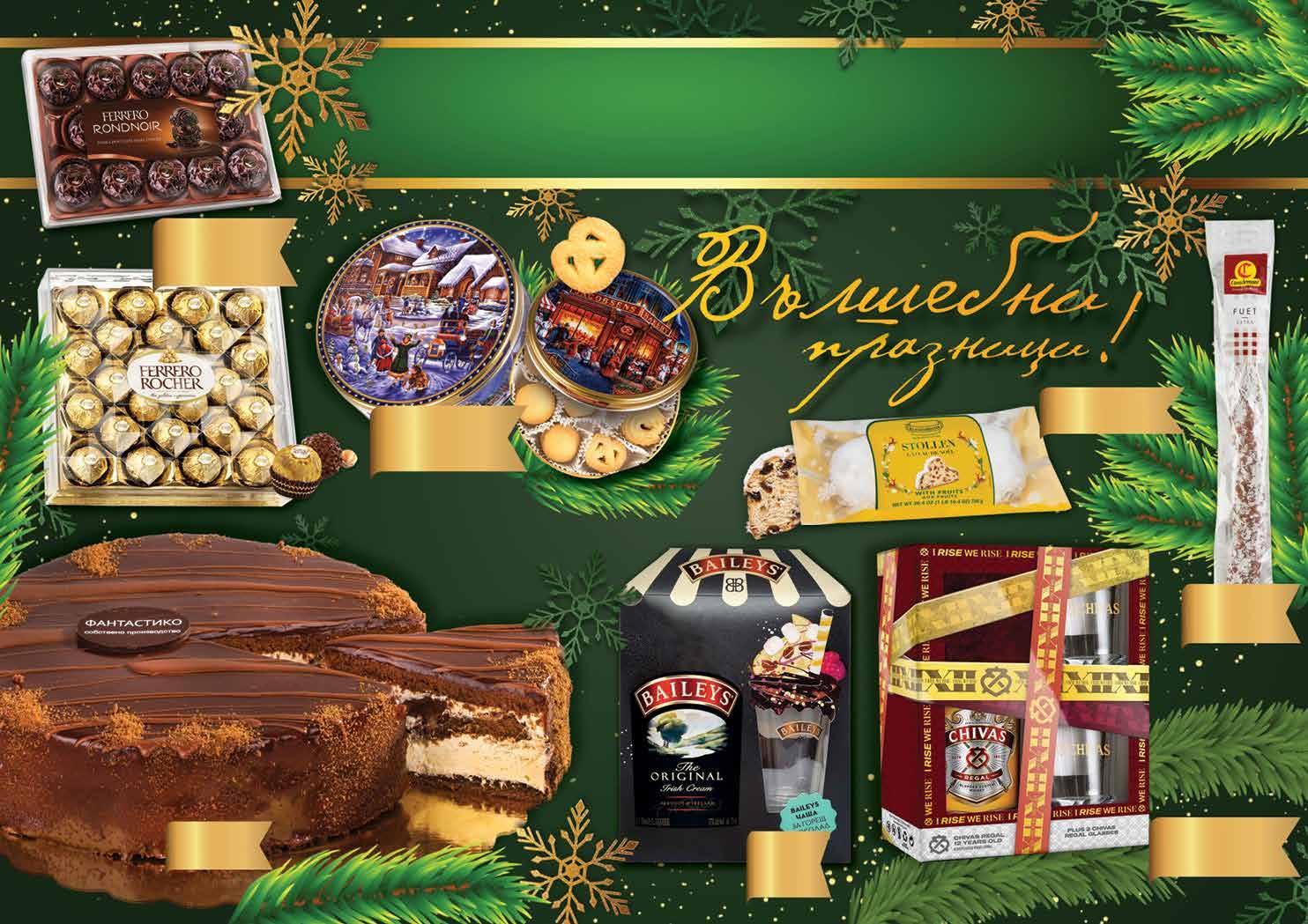 11.99 -33% 7 99 лв|бр 99 лв|бр classic 19.99 -25% 14 89 лв|бр ROND noir 14.99 -20% 11 12.59 -36% 7 99 лв|бр village 11.99 -47% 6 29 лв|бр Market 99 лв|бр 59.99 -31% 40 99 лв|бр 32.99 -27% 23 5.69 -21% 4 49 лв|бр 99 лв|бр 19.99 -20% 15 Бисквити JACOBSENS Winter Village 400 г; The Market place 340 г Коледен щолен KUCHENMEISTER 750 г Бонбони FERRERO ROCHER Rondnoir 138 г; Classic 300 г Шотландско уиски CHIVAS REGAL 700 мл + 2 чаши Ликьор BAILEYS 700 мл + чаша Салам фует натурален CASADEMONT 170 г Бананова торта 850 г fantastico.stores ОФЕРТА ЗА ПЕРИОДА от 01.12.2022 г. до 22.00 ч . на 02.01.2023 г.
