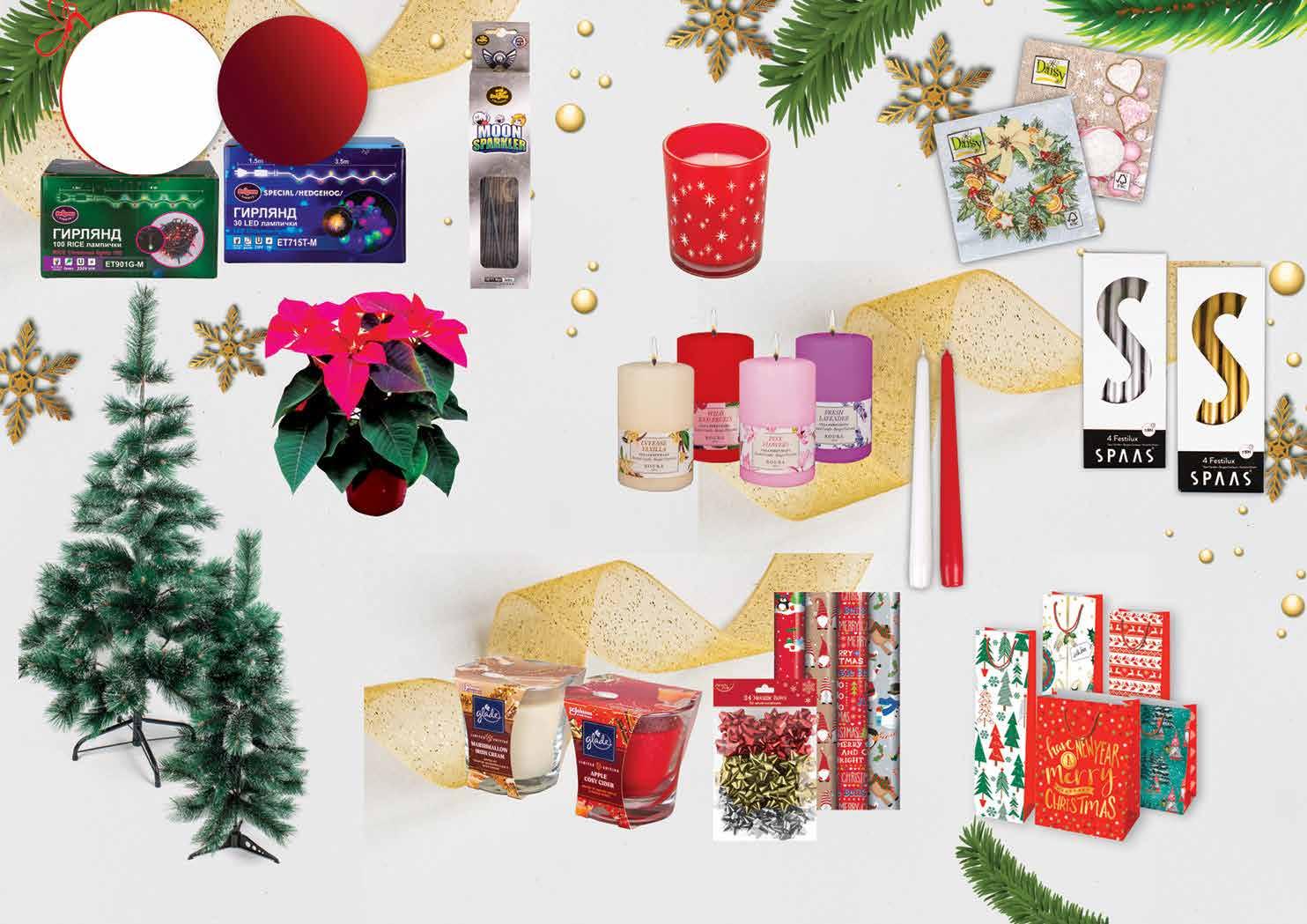 99 лв|бр 90 см 23.99 -25% 17 99 лв|бр 90 см 24.99 -20% 19 99 лв|бр 120 см 49.99 -26% 36 99 лв|бр 120 см 52.99 -24% 39 99 лв|бр 150 см 64.99 -24% 48 99 лв|бр 150 см 69.99 -24% 52 7 99 лв|oп. 7 99 лв|бр 4 99 лв|бр 6 99 лв|оп. панделки 3 99 лв|бр хартия 4 м 4 99 лв|бр хартия 7 м 9 99 лв|бр 1.79 -22% 1 39 лв|бр 2 49 лв|бр ht2 2 99 лв|бр ht4 3 29 лв|бр ht5 4 29 лв|бр ht9 2.99 -33% 1 99 лв|oп. 12.99 -23% 9 99 лв|бр 60 см 3 99 лв|бр 1 цвят 8 99 лв|бр 3 цвят 9 99 лв|бр 5 цвят 2 39 лв|бр Свещ SPAAS сребриста; златиста 4 бр в опаковка размер: 250мм часове горене +/-8 ч. Ароматна свещ ROURA различни аромати Размер: 100 мм х 60 мм. часове горене +/- 40 часа. Ароматна свещ Аll I want for Christmas Размер: 80 мм х 65 мм. Часове горене +/-32ч./ Ароматизираща свещ GLADE златна приказка; топъл ябълков сайдер; бордо и горски плодове 129 г часове горене +/- 30 часа Коледни панделки 24 бр в опаковка; Коледна хартия 4 м; 7 м Конусна свещ бяла; червена часове горене +/-8 ч. Коледна торбичка код НТ2; НТ4; НТ5; НТ9; различни размери УНИКАРТ Зелена елха с бели връхчета 60 см; 90 см; 120 см; 150 см Зелена елха 90 см; 120 см; 150 см Бенгалски огън MOON SPARKLER 16 см 20 бр в опаковка Цвете Коледна звезда 5 цвята 12см; 3 цвята 12см; 1 цвят Коледноновогодишни салфетки 33х33 см 20 бр в опаковка различни десени *предложението е валидно за магазините със сини цени Всички светещи гирлянди и лампички с марка ЕНИГМА с ОТСТЪПКА -20%