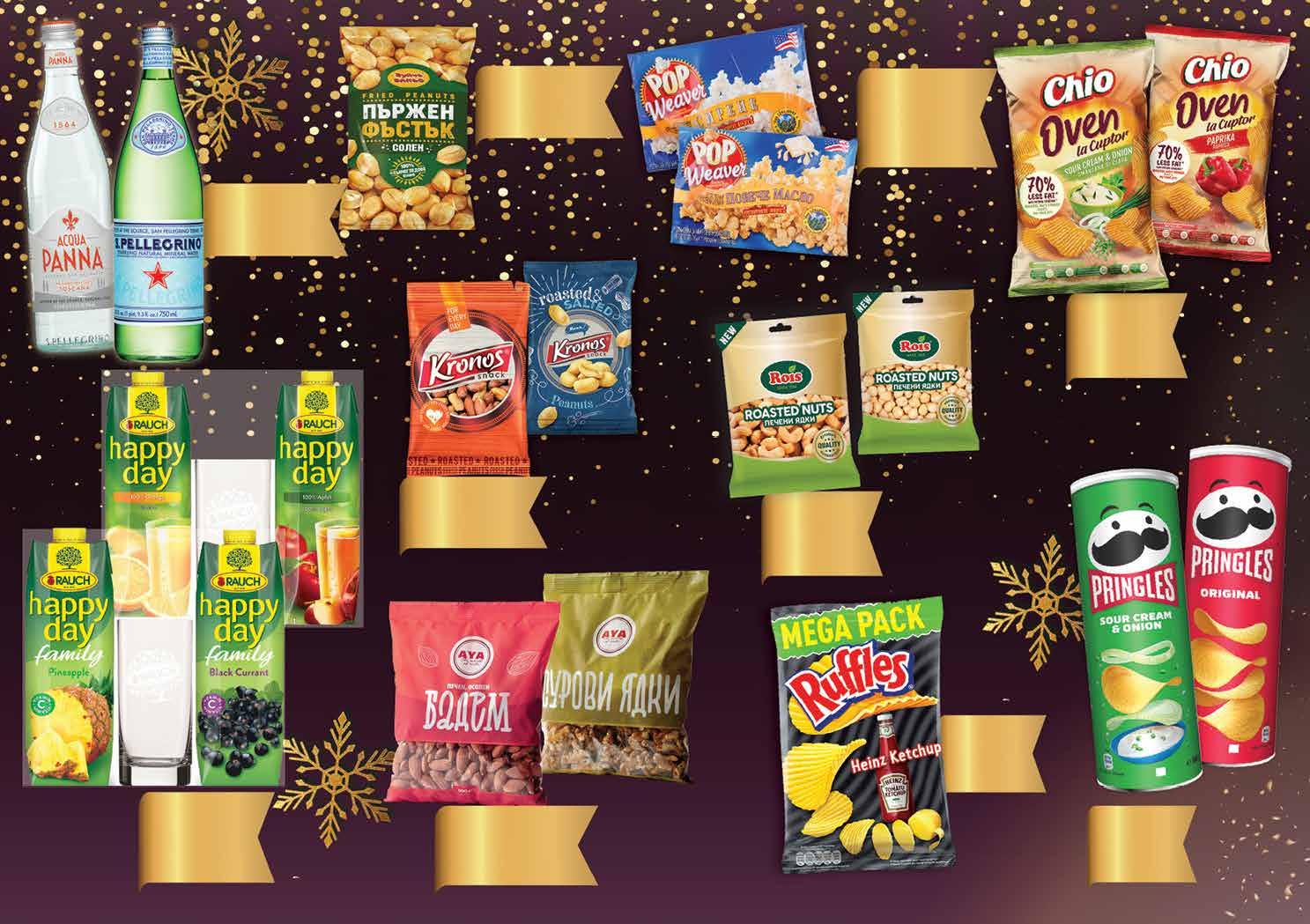 5 99 лв|к-т 5.99 -33% 3 99 лв|бр 2.59 -23% 1 99 лв|бр 12.99 -23% 9 99 лв|бр орех 1.69 -29% 1 19 лв|бр 4.49 -33% 2 99 лв|бр печен 5.19 -27% 3 79 лв|бр пържен 99 лв|бр бадеми 18.99 -31% 12 4.89 -38% 2 99 лв|бр 6.89 -27% 4 99 лв|бр кашу 7.99 -37% 4 99 лв|бр лешник 3.99 -40% 2 39 лв|бр 3.99 -20% 3 19 лв|бр Чипс PRINGLES различни вкусове 165 г Пържени фъстъци ВУЙЧО ВАНЬО солен, 160 г Пуканки за микровълнова фурна POP WEAVER с масло 78 г; със сирене 91 г Фъстъци KRONOS печени; пържени 300 г Комплект RAUCH Happy Day 2 бр х 1 л + чаша; Happy Day Familily 2 бр х 1 л + чаша Газирана вода SAN PELLEGRINO/ Минерална вода ACQUA PANNA 750 мл Чипс RUFFLES различни вкусове 260 г Печени ядки ROIS кашу; лешници 140 г Сурови орехи микс 400 г; Печени бадем 500 г осолени АЯ Печен чипс CHIO паприка; сметана и лук 125 г 19 ТВ „Фантастико” не носи отговорност за допуснати печатни грешки. Количествата са лимитирани! Предложенията са валидни до сряда 22.00ч. на 02.01.2023 г.