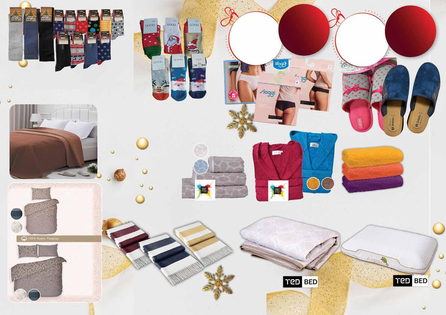 3.99 -25% 2 99 лв|бр чорпи 3/4 2.49 -25% 1 85 лв|бр чорапи 99 лв|бР 49 2 69 лв|бр 99 лв|бр 200/220 32.49 -23% 24 99 лв|бр 160/220 26.99 -25% 19 99 лв|бр 150/200 69.99 -50% 34 99 лв|бр 200/220 89.99 -44% 49 99 лв|бр 70/140 16 99 лв|бр 69.99 -48% 35 99 лв|бР 27.99 -21% 21 8 49 лв|бр 50/80 3 49 лв|бр 30/50 6 69 лв|бр 50/80 1 69 лв|бр 30/30 2 79 лв|бр 30/50 49 лв|к-т 2 части 49.99 -27% 36 49 лв|к-т 3 части 64.99 -23% 49 Чорапи с шарка VAS височина над глезена дамски № 36-39; мъжки №42-45/ Дамски чорапи 3/4 ФЕНИКС памук размер 36-38, различни видове 1 чифт Шалте Релакс 160/220 см; 200/220 см Коледни чорапи термо GOOD мъжки №43-46 дамски №39-42 детски №35-38 Одеяло АЛЯСКА 140/200см различни цветове Завивка ARGAN DELUXE DUVET 150/200; 200/220 Халат за баня Меми S; M; L; XL с качулка Възглавница Argan Deluxe Aero 60/40/12 см Хавлиена кърпа Леонардо цветя 30/30 см; 30/50 см; 50/80 см различни цветове Хавлиена кърпа Стоун 30/50 см; 50/80 см; 70/140 см различни цветове Спален комплект три части DILIOS Леа; Рио; Амбър • горен чашаф 200/215 см; • калъфки 50/70 см Спален комплект две части DILIOS Леа; Рио; Амбър • горен чашаф 150/215 см; • калъфка 50/70 см; Всички видове бельо с марка SLOGGI с Всички пантофи с марка GRIFF/IN BLU с ОТСТЪПКА ОТСТЪПКА -20% -20% *предложението е валидно за магазините със сини цени *предложението е валидно за магазините със сини цени 31 ТВ „Фантастико” не носи отговорност за допуснати печатни грешки. Количествата са лимитирани! Предложенията са валидни до сряда 22.00ч. на 02.01.2023 г.