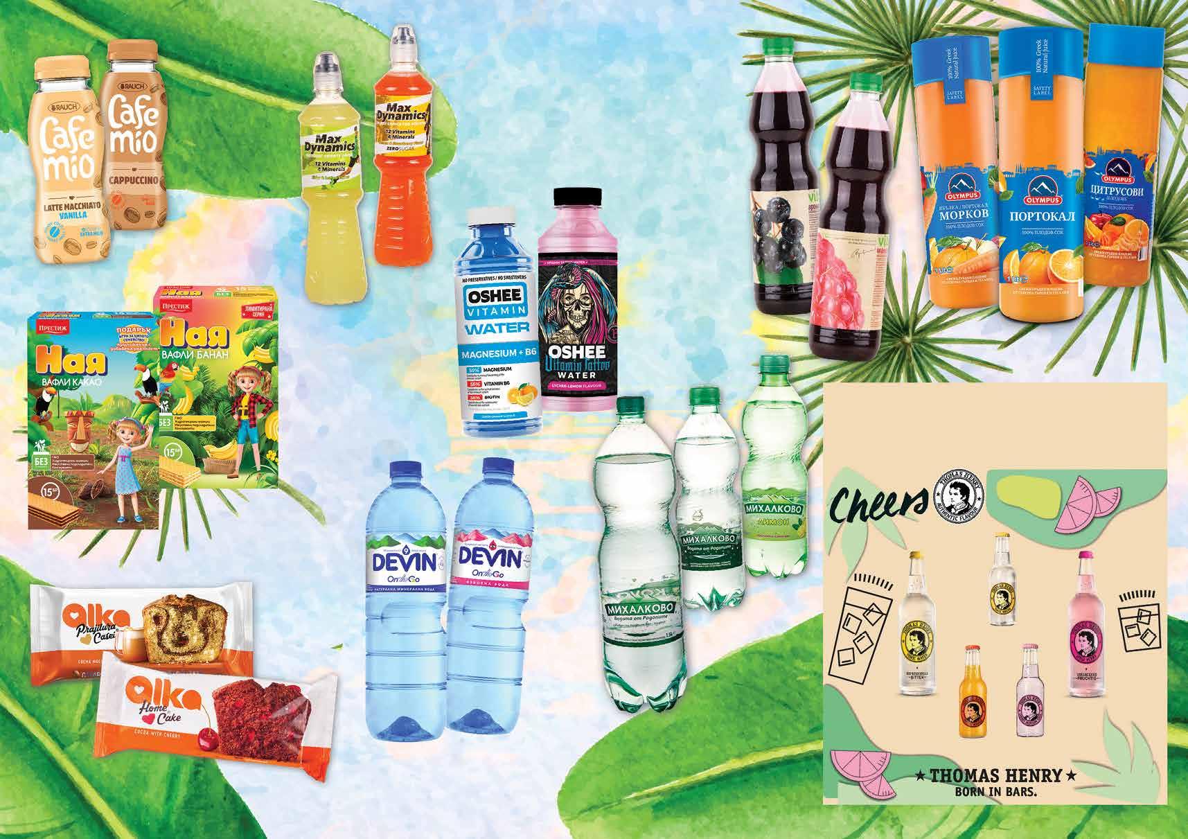 7.29 -24% 5 49 лв|бр 2.39 -20% 1 89 лв|бр 3.29 -24% 2 49 лв|бр 1.79 -22% 1 39 лв|бр 4.35 -31% 2 99 лв|бр 321; 350 г 4.35 -31% 2 99 лв|бр 285 г 9.69 -27% 6 99 лв|бр 0.99 -24% 0 75 лв|бр 500 мл 1.09 -22% 0 85 лв|бр лимонена 1.49 -26% 1 09 лв|бр 1,5 л 6.59 -24% 4 99 лв|бр 1.15 -22% 0 89 лв|бр минерална 1.15 -22% 0 89 лв|бр изворна Напитка OSHEE различни видове 555 мл Изотонична напитка MAX DYNAMICS различни видове 550 мл Сироп Витанеа концентрат различни видове 1л Газирана вода МИХАЛКОВО РЕТ, 1,5 л; РЕТ, 500 мл; лимонена РЕТ, 500 мл Сок OLYMPUS различни видове 1 л Минерална/ Изворна вода DEVIN On the Go PET, 1 л Всички напитки с марка THOMAS HENRY с отстъпка -25% Кекс ALKA различни видове 350 г Вафли НАЯ различни видoве 285 г; 321 г; 350 г *акцията е валидна за магазините със сини цени Напитка RAUCH Cafemio различни видове 250 мл 13 ТВ „Фантастико” не носи отговорност за допуснати печатни грешки. Количествата са лимитирани! Предложението е валидно до сряда 22.00ч. на 12.07.2023г.