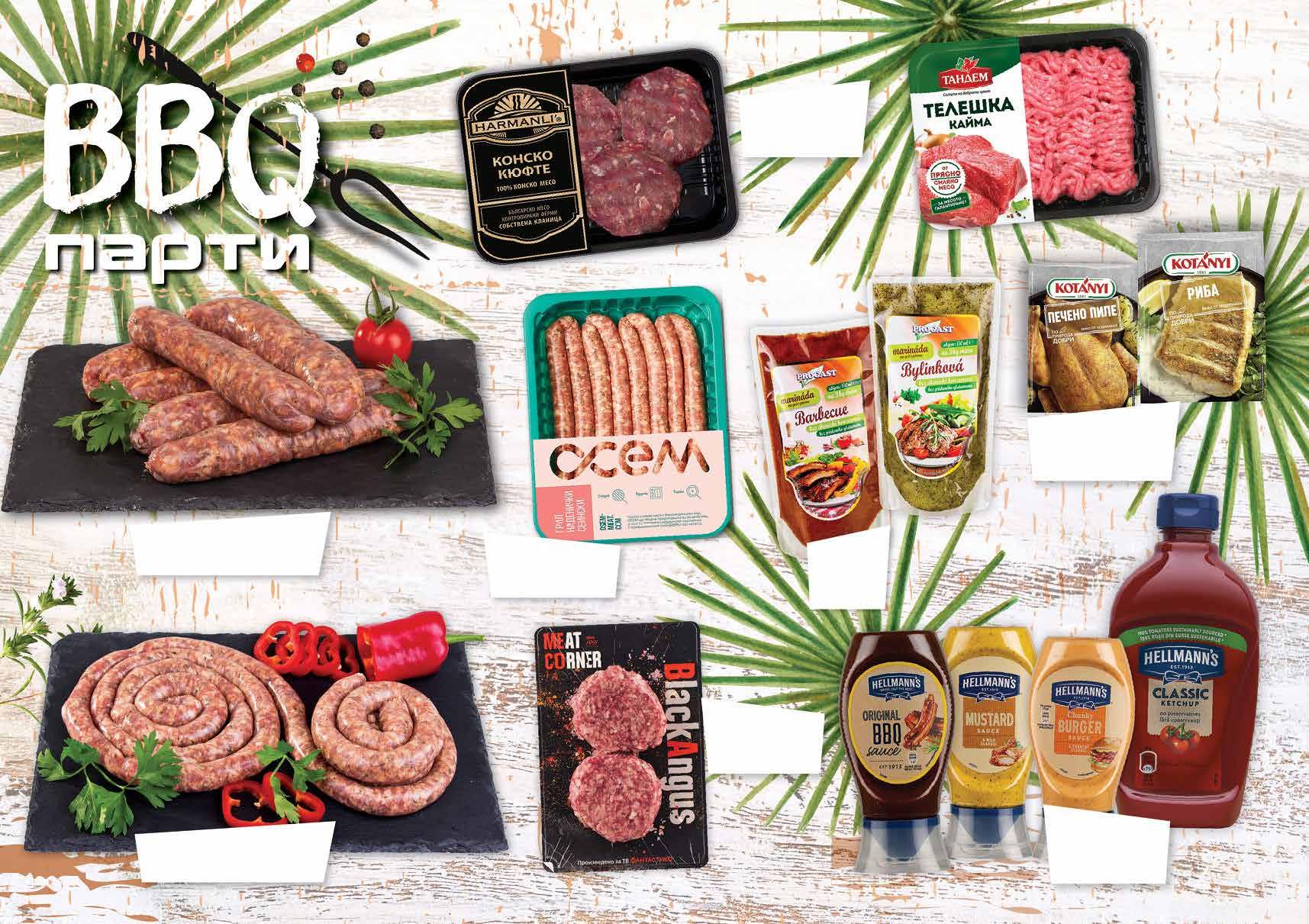 10.99 -27% 7 99 лв|бр 6.99 -28% 4 99 лв|бр сос 6.99 -37% 4 39 лв|бр кетчуп 12.99 -23% 9 99 лв|кг 9.99 -25% 7 49 лв|бр 12.99 -23% 9 99 лв|кг 9.69 -27% 6 99 лв|бр 7.79 -28% 5 59 лв|бр 6.39 -23% 4 89 лв|бр 2.19 -27% 1 59 лв|бр Марината PROGAST различни видове 150 мл Телешка кайма ТАНДЕМ тарелка, 400 г Говежди бургер MEAT CORNER Black Angus 300 г Суров суджук Петрохан насипен от щандова витрина БИЛЯНА-МЕС Грил наденички ОСЕМ тарелка 400 г Микс от подправки различни видове 23-40 г KOTANYI Карначе насипно от щандова витрина СММ Сос 250 мл; Кетчуп 470-485 г HELLMANN`S различни видове Конски кюфтета ХАРМАНЛИ 6 бр х 80 г тарелка, 480 г 2 Продуктите се продават в количества, обичайни за едно домакинство. Декорацията към продуктите не е включена в тяхната цена. ТВ „Фантастико“ си запазва правото на промяна в цените.
