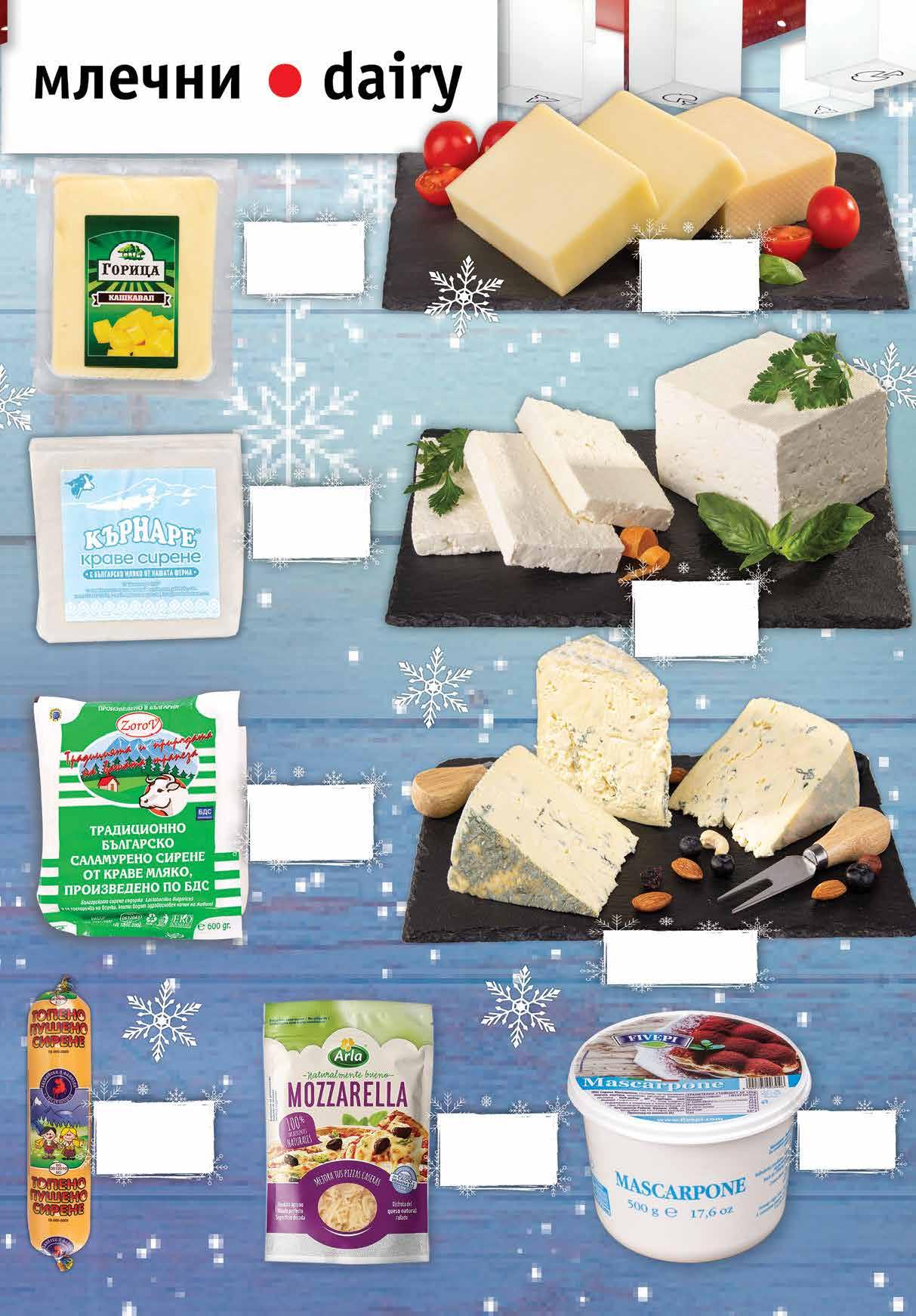 4.89 -20% 3 89 лв|бр 99 лв|кг 16.49 -27% 11 69 лв|бр 13.39 -20% 10 8.99 -22% 6 99 лв|бр 12.98 -46 % 6 99 лв|бр 3.59 -25% 2 69 лв|бр 99 лв|кг 29.99 -26% 21 9.99 -25% 7 49 лв|бр 90 лв|кг 33.90 -26% 24 Синьо сирене MАMMEN DANABLU от деликатесна витрина Моцарела ARLA настъргана 150 г Маскарпоне FIVEPI 500 г Сирене от краве мляко СИТОВО насипно от щандова витрина Топено пушено сирене ХАДЖИЙСКИ 180 г Сирене от краве мляко ЗОРОВ по БДС вакуум, 600 г Сирене от краве мляко КЪРНАРЕ вакуум, 400 г Кашкавал от краве мляко ГОРИЦА вакуум, 400 г Кашкавал от краве мляко ЛЕСИДРЕН от голяма пита 3 ТВ „Фантастико” не носи отговорност за допуснати печатни грешки. Количествата са лимитирани! Предложенията са валидни до сряда 22.00ч. на 14.12.2022 г.