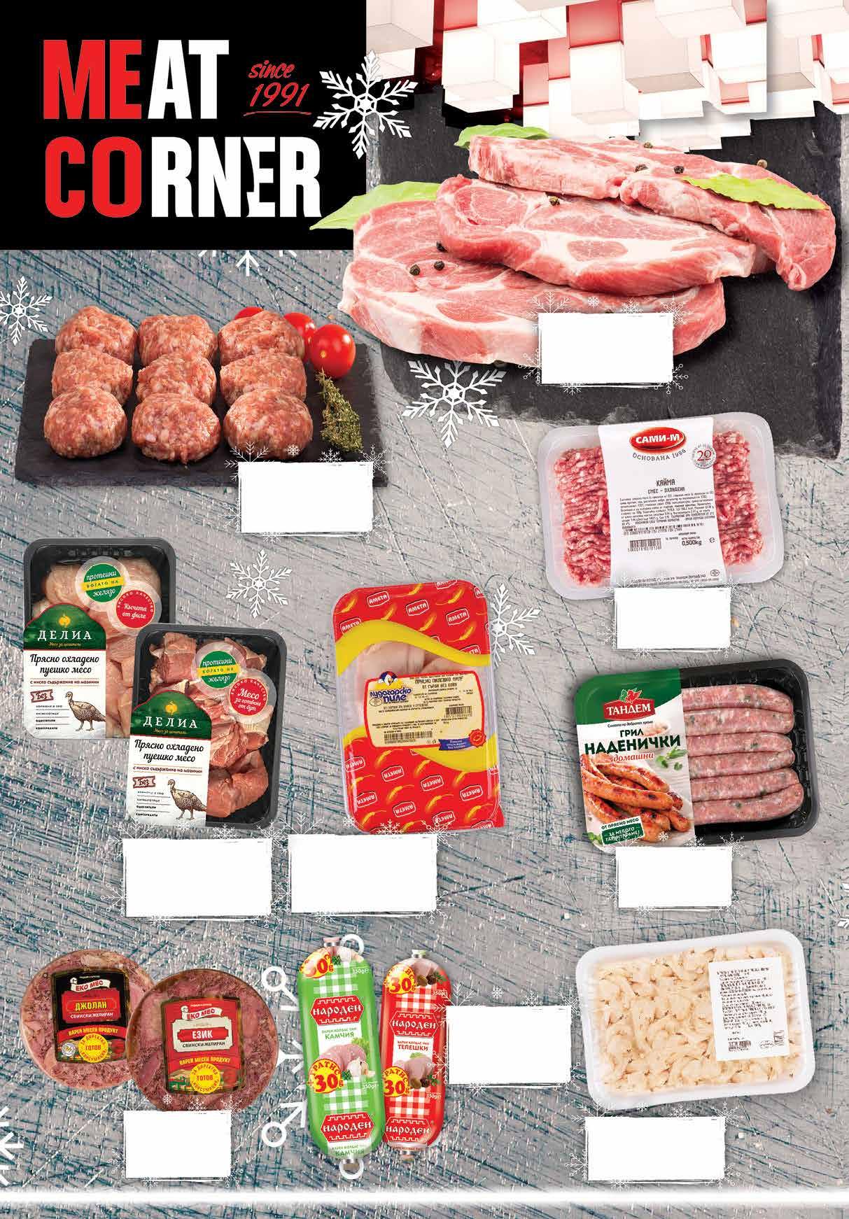 7.79 -23% 5 99 лв|бр 5.99 -23% 4 59 лв|бр виенска 6.19 -25% 4 59 лв|бр пуешка 99 лв|кг 17.99 -27% 12 99 лв|кг 49.99 -40% 29 5.79 -22% 4 49 лв|бр 99 лв|кг 38.99 -23% 29 99 лв|кг 57.99 -22% 44 9.79 -23% 7 49 лв|бр 99 лв|кг 13.99 -21% 10 7.79 -23% 5 99 лв|кг Шунка КФМ виенска; пуешка вакуум, 160 г Жарена вита шунка КЕН насипна от щандова витрина Бекон ТАНДЕМ вакуум, 210 г Салам GIANNI NEGRINI наполи; пеперони слайс вакуум, 80 г Свинска пастърма Кайлъка ПЛЕВЕН МЕС насипнa от щандова витрина Луканка конска СТАРИЯТ МЕСАР насипнa от щандова витрина Сух колбас Бургас МАДЖАРОВ вакуум, 260 г Луканка ОРЕХИТЕ Добруджанска; Чардака Гастро насипна от щандова витрина Луканкова наденица Удивителна БОНИ насипна от щандова витрина Пилешки кренвирши ГРАДУС насипни от щандова витрина 7 ТВ „Фантастико” не носи отговорност за допуснати печатни грешки. Количествата са лимитирани! Предложенията са валидни до сряда 22.00ч. на 14.12.2022 г.