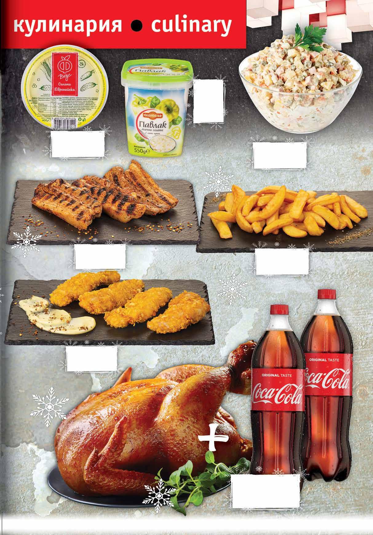 99 лв|кг 19.99 -20% 15 49 лв|к-т 16.87 -20% 13 99 лв|кг 33.99 -23% 25 2.89 -24% 2 19 лв|бр 2.49 -20% 1 99 лв|бр 11.49 -25% 8 59 лв|бр 9.49 -30% 6 60 лв|кг Eвропейска салата Ф ВКУС кутия, 400 г Млечна салата Павлак ОЛИНЕЗА 550 г Руска салата с шунка КЕНАР насипна от щандова витрина 12,89 + 1,99 + 1,99 = Печено пиле + 2* бр Кока Кола или Кока Кола без захар 1 л *от един и същи вид Пържени картофи стек хаус Панирани пилешки бон филенца с корнфлейкс Печени свински гърди без кост на скара 11 ТВ „Фантастико” не носи отговорност за допуснати печатни грешки. Количествата са лимитирани! Предложенията са валидни до сряда 22.00ч. на 14.12.2022 г.