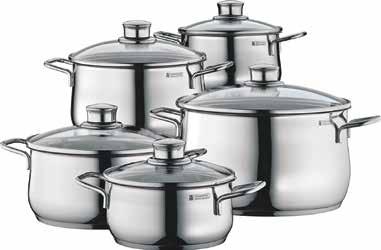 Cromargan Edelstahl 18/10 rostfrei, poliert, spülmaschinengeeignet, 2 x Bratentopf: Ø 16 und 20 cm, 3 x Fleischtopf: Ø 16, 20 und 24 cm