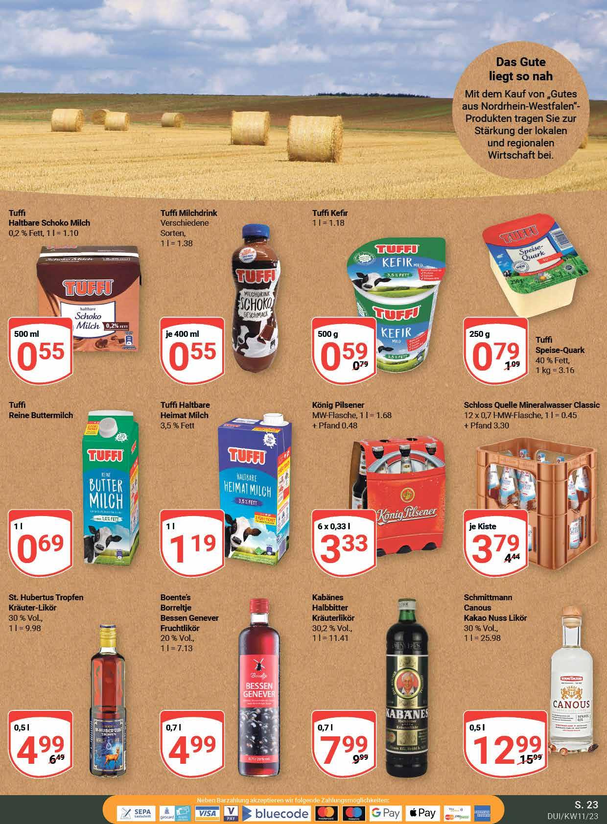 der Vorrat reicht Neben Barzahlung akzeptieren wir folgende Zahlungsmöglichkeiten: S. 21 DUI/KW11/23