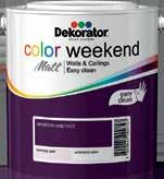 ЛАЗУРЕН ЛАК За защита и декорация на предмети от дърво на открито и в закрити помещения∙покривност:210-12m/lза слой ∙ 650 ml (22352736) 8,49 лв ЕМАЙЛЛАКБЪРЗОСЪХНЕЩ Устойчиво покритие за дървени, метални и други повърхности ∙ 7-9покривност:2m/lзаслой ∙ 650 ml (13111472) от 9,99 лв COLOR WEEKEND Matt Цветен латекс с гладко, дълготрайно покритие. матова интериорна боя ∙ покривност:28-10m/lзаслой ∙ 24 различни цвята ∙ 2,5 L (23551961) 17,99 лв DEKORATOR СРЕБЪРНИ ЙОНИ Интериорна боя за стени и тавани с повишена защита, лесно за поддържане и почистване2∙ покривност: 12-16 m /L за слой ∙ 2.5 L (13111090) - 21,99 лв ∙ 4 L (13111106) - 31,99 лв ∙ 8,5 L (13111113) - 61,99 лв ∙ 15 L (13111120) - 105,00 лв ЛАЗУРЕН ЛАК За защита и декорация на предмети от дърво на открито и в закрити помещения∙покривност:210-12m/lза слой ∙ 650 ml (22352736) 8,49 лв ЕМАЙЛЛАКБЪРЗОСЪХНЕЩ Устойчиво покритие за дървени, метални и други повърхности ∙ 7-9покривност:2m/lзаслой ∙ 650 ml (13111472) от 9,99 лв COLOR WEEKEND Matt Цветен латекс с гладко, дълготрайно покритие. матова интериорна боя ∙ покривност:28-10m/lзаслой ∙ 24 различни цвята ∙ 2,5 L (23551961) 17,99 лв www.home-max.bg16 БОИ