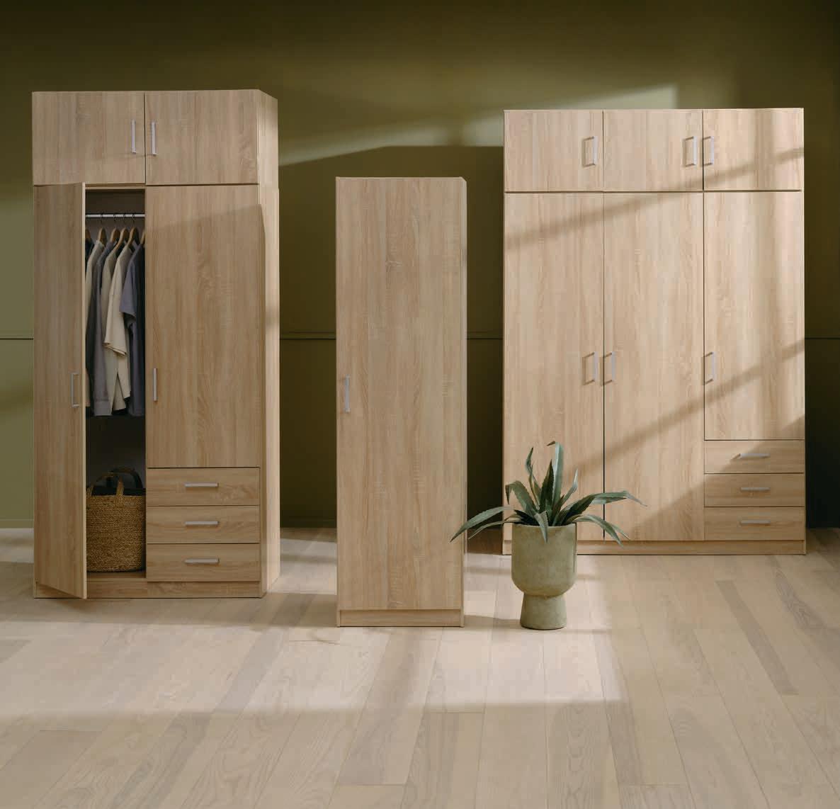 11 HAGENDRUP МЕБЕЛИ Декоративен фурнир. 1) Надстройка Ш96 x В41 x Дълб.50 см 90 лв 2) Гардероб с интериор: 3 рафта и 1 лост. Ш96 x В176 x Дълб.50 см 325 лв 3) Гардероб с интериор: 3 рафта. Ш49 x В176 x Дълб.50 см 200 лв 4) Надстройка Ш144 x В41 x Дълб.50 см 150 лв 5) Гардероб с интериор: 3 рафта и 1 лост. Ш144 x В176 x Дълб.50 см* 375 лв 90лв 325лв 2) 1) 200лв 3) 150лв 4) 375лв 5) SATTRUP ГАРДЕРОБ Декоративен фурнир. С плъзгащи врати. Интериор гардероб: 2 рафта и 2 лоста. Ш151 x В219 x Дълб.60 см* 799 лв Спестете 31% 550лв NORDBY ГАРДЕРОБ Декоративен фурнир и MDF. Чекмеджета с ролкови водачи за цялостно отваряне. Интериор гардероб: 4 рафта и 1 лост. Ш150 x В200 x Дълб.57 см* 1099 лв Спестете 22% 850лв *Този размер/артикул се доставя по поръчка. 3601020 3601021 3630050 3606568 3601019 3672229 3689900