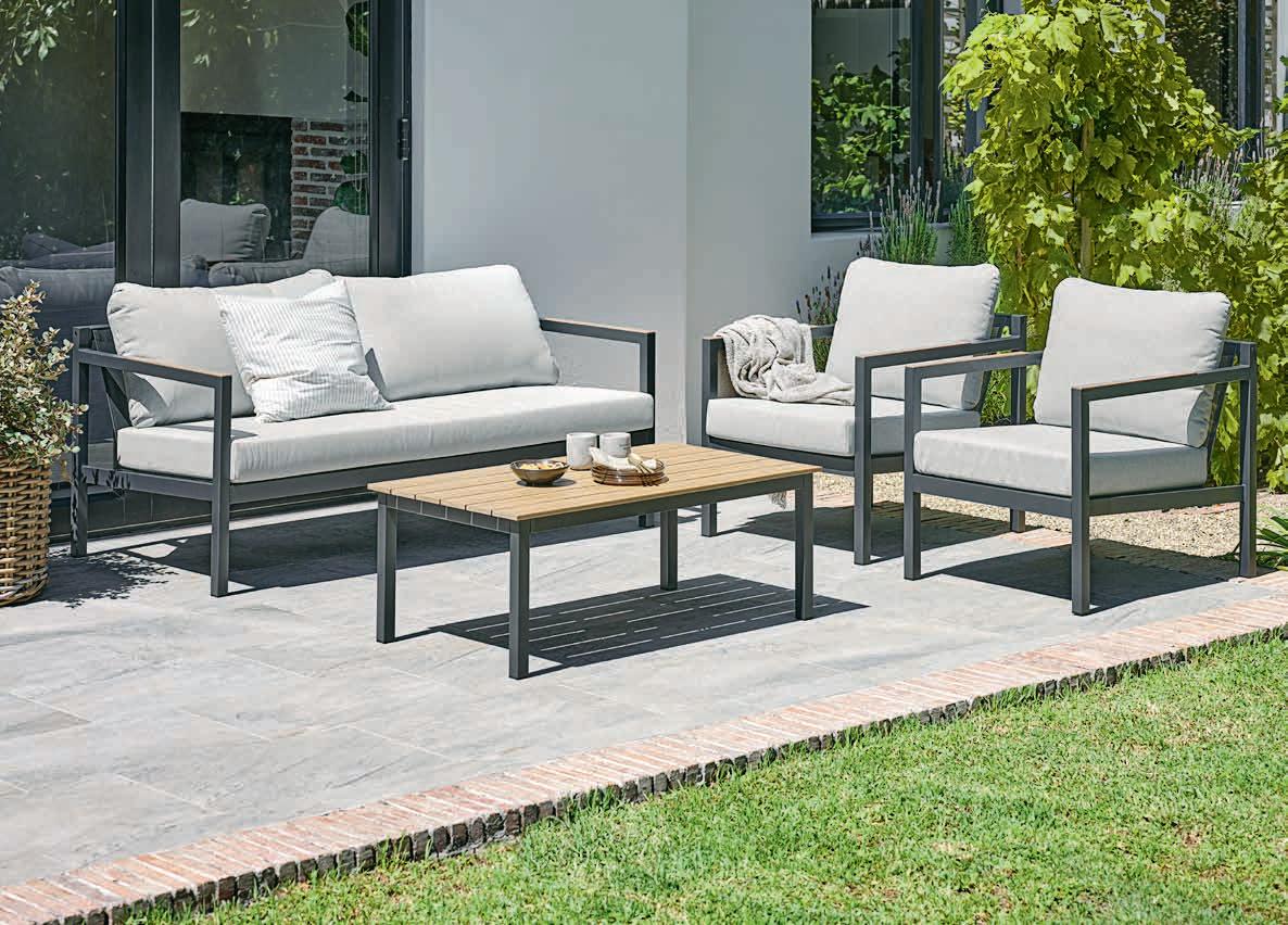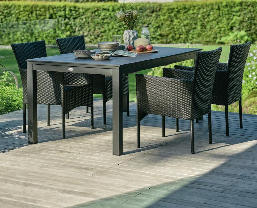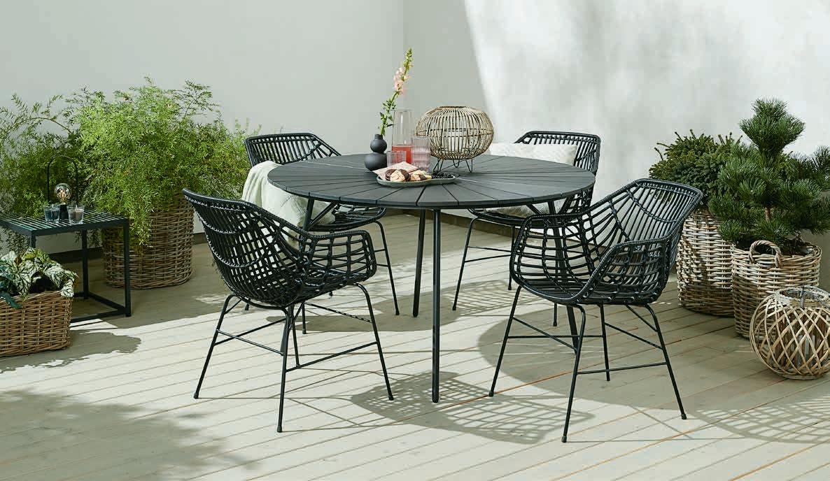 UDBYNEDER + NABE ГРАДИНСКИ МЕБЕЛИ Маса: Масивна FSC® тикова дървесина. Ø120 x В75 см. Стол: Алуминий и UV-защитена пластмаса. Стифиращ. Маса 899 лв Стол 199