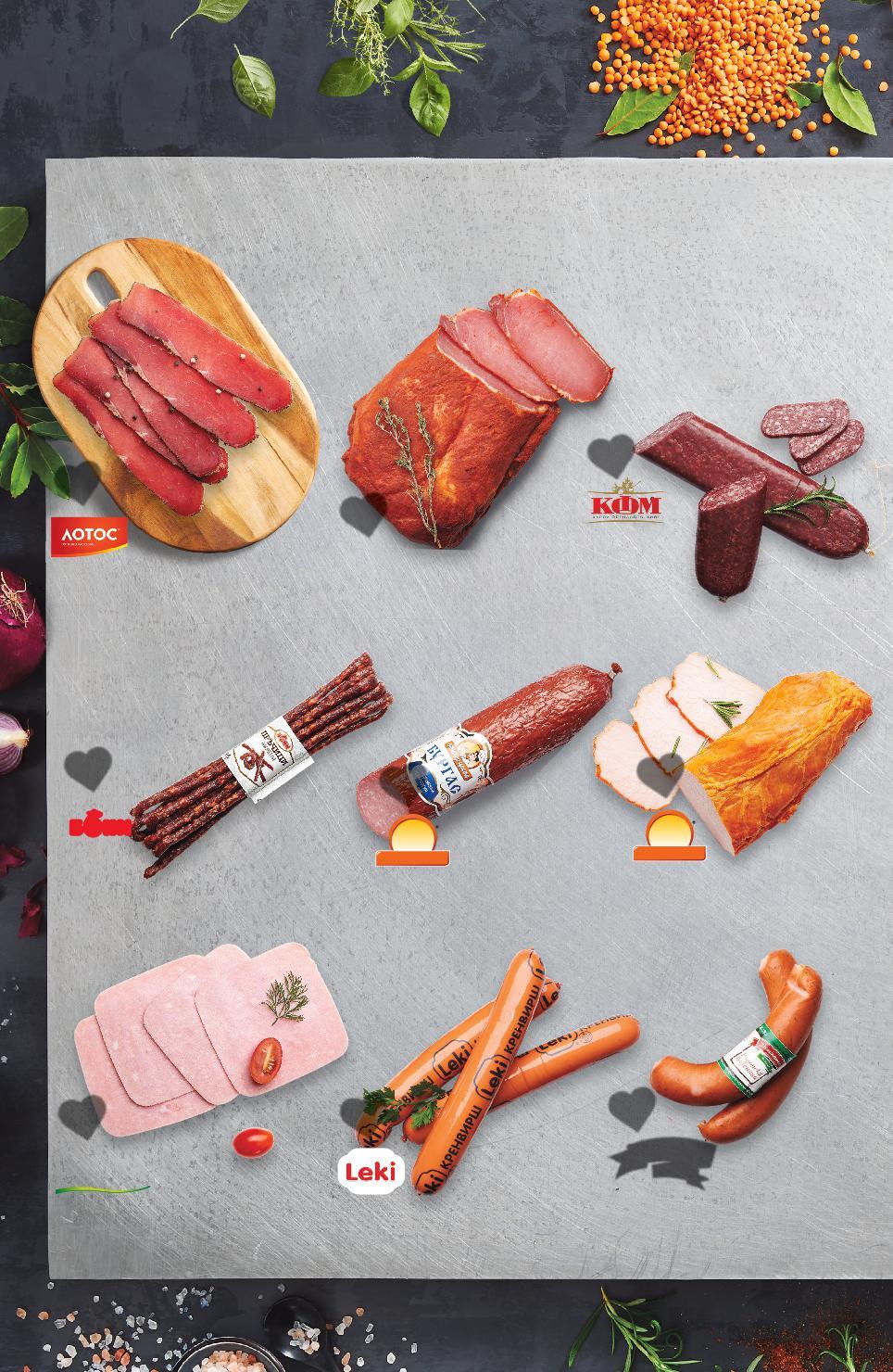 Цените са валидни за посочените на последна страница хипермаркети. Стоките се продават в количества, обичайни за едно домакинство. Всички цени са в лева с включен ДДС. Всички артикули се предлагат без декорация. Снимките са примерни. -25% 14,89 19,89 -29% 17,99 25,49 7,89 само -25% 9,89 13,29 -35% 26,99 41,99 -47% 8,99 16,99 -33% 25,99 38,99 -30% 24,89 35,99 ПЛАТО С КАЧЕСТВЕНИ КОЛБАСИ -30% 17,49 24,99 Шунка Тост кг (1 кг = 8,99) Луканка Смядовска или Пиринка сурово-сушена 100 г се правят от 176 г свинско месо кг (1 кг = 25,99) Свинска пастърма кг (1 кг = 24,89) Жарено филе кг (1 кг = 14,89) Бирени пръчици сурово-сушени кг (1 кг = 17,99) Кренвирши свински кг (1 кг = 7,89) Наденица македонска или родопска кг (1 кг = 9,89) Свински бут Елена поръска с чубрица кг (1 кг = 26,99) Салам Бургас варено-пушен кг (1 кг = 17,49) КОЛБАСИ НАД 300 КОЛБАСА ЩЕ НАМЕРИШ ПРИ НАС сурово-сушен 40 дни с ароматни подправки опушени с дървени стърготини S14-BG-KW41-LFT-BED2_L-1000-10 14