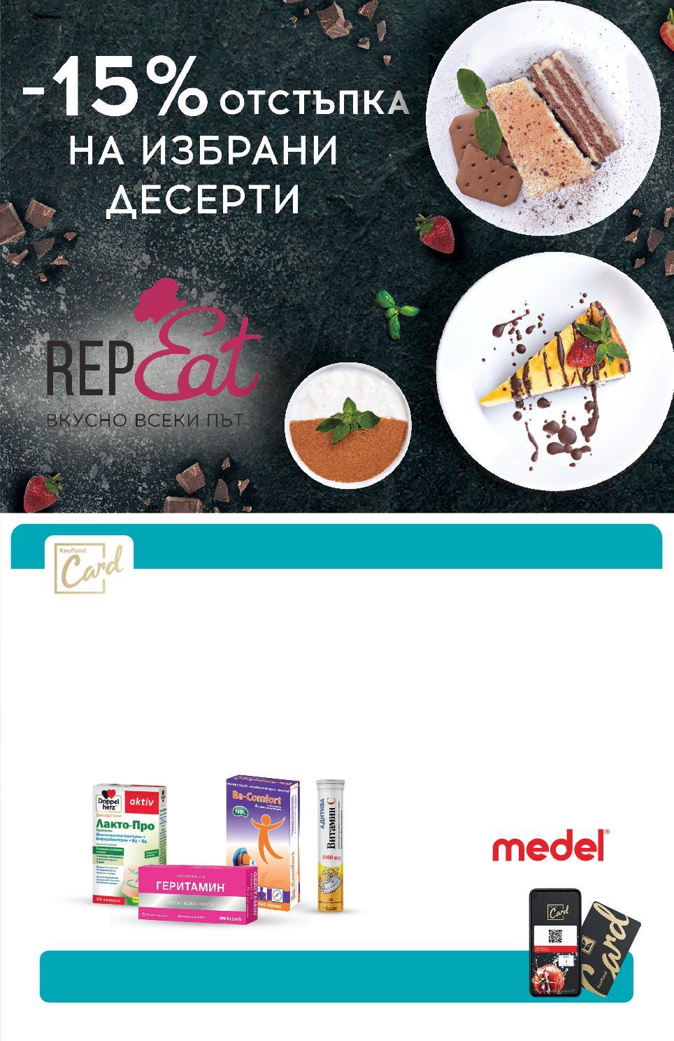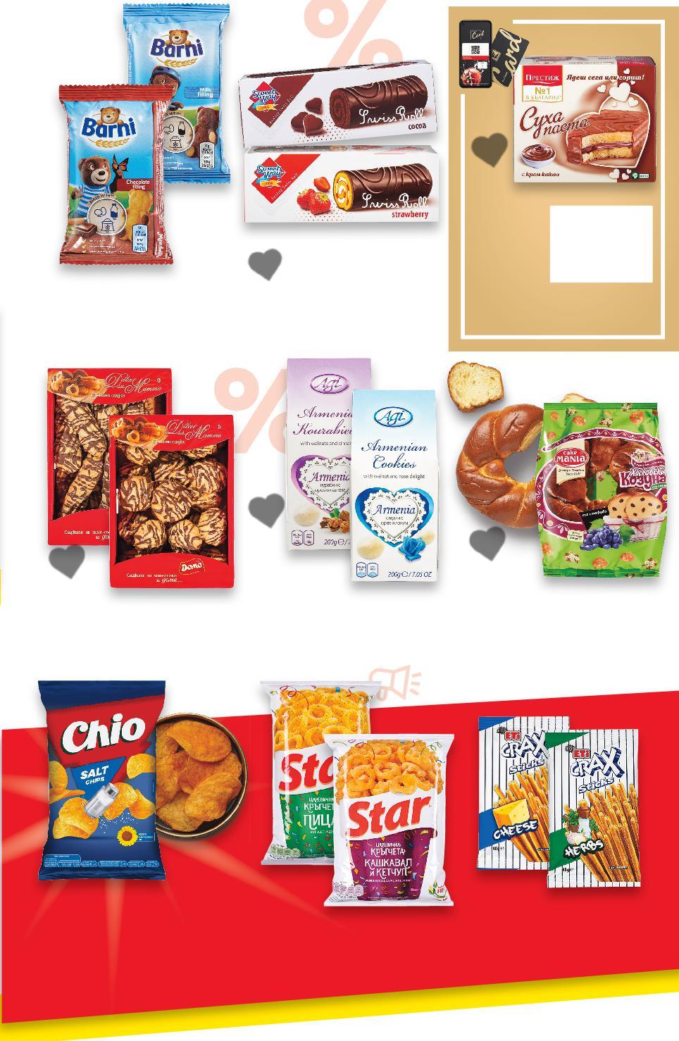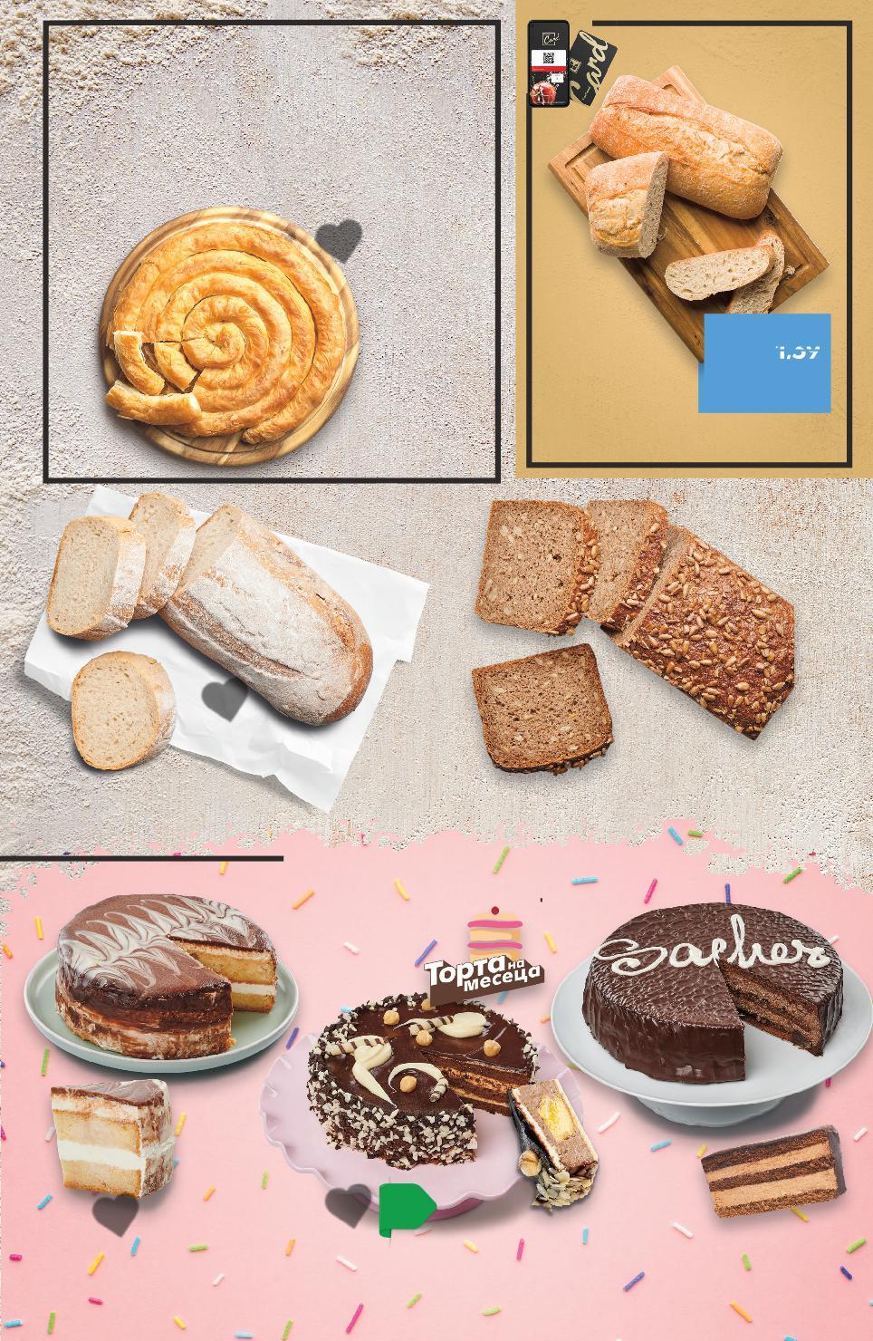 *Със звездичка са обозначени артикулите, които са специално предложение до изчерпване на наличностите. Kaufland не носи отговорност за печатни грешки. РАЗНООБРАЗИЕ ОТ НАД 20 ТОРТИ И ДЕСЕРТA НЕРТA АД БЪЛГАРСКА ВИТА БАНИЦА ✓ ПРИГОТВЕНА ПО ТРАДИЦИОННА РЕЦЕПТА ✓ С КРАВЕ СИРЕНЕ И ИЗВАРА ✓ ПРЯСНО ИЗПЕЧЕНА ОТ НАШАТА ПЕКАРНА 11,99 само -42% 3,99 6,99 11,99 само 1,04 само само 3,99 1,49 само -43% 0,79 1,39 само с1,39 амо Торта Сахер 1200 г (1 кг = 10,00) Торта сиропирана 700 г (1 кг = 5,70) ЕЛЕЙ Торта Лешник 900 г (1 кг = 13,33) Хляб бял на каменна пещ 300 г (1 кг = 3,47) Вита баница със сирене и извара 460 г (1 кг = 8,68) Хляб със слънчогледови семки 480 г (1 кг = 3,11) Чиабата 300 г (1 кг = 2,64) Цена с KAUFLAND CARD Ново Отстъпката с Kaufland Card e изчислена спрямо стандартната текуща цена, на която продуктът се предлага в хипермаркета. ЦЕНАТА Е ВАЛИДНА 1.10. – 31.10. S19-BG-KW41-LFT-BACK_R-1000-10 19